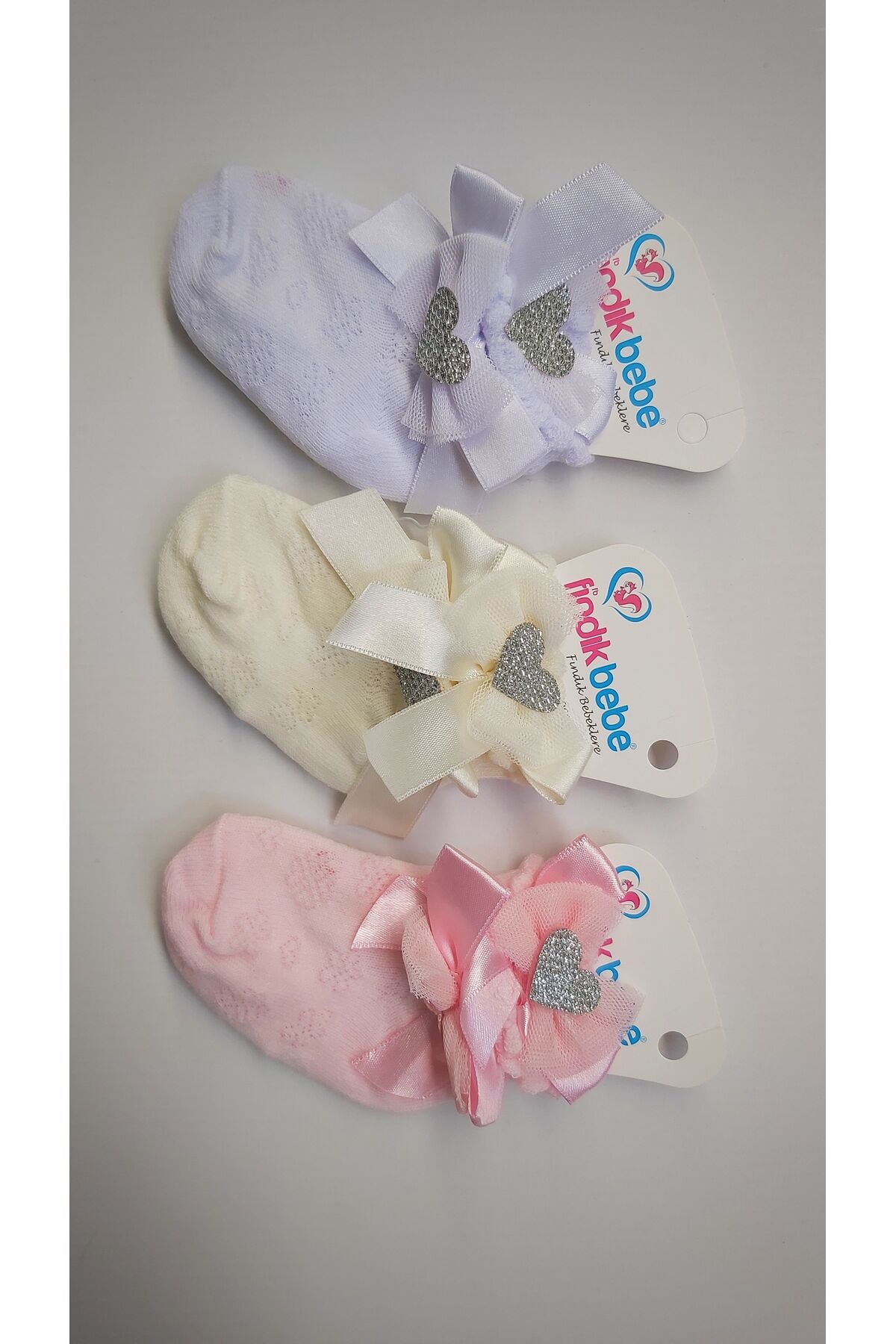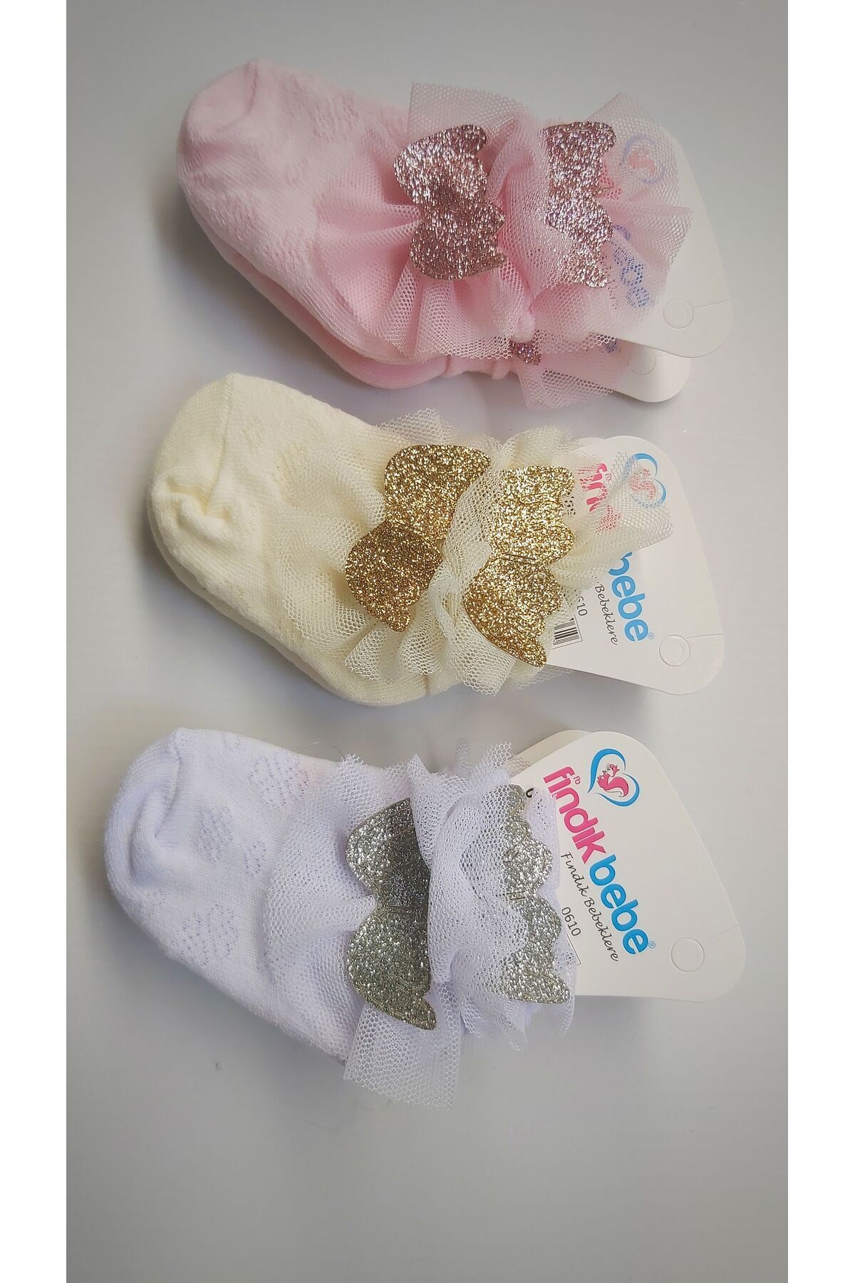 Ekru Pembe Beyaz Tüllü Pamuklu 3'lü Bebek Çorabı Ekru Pembe Beyaz Tüllü Pamuklu 3'lü Bebek Çorabı PMK2 0-3 AY