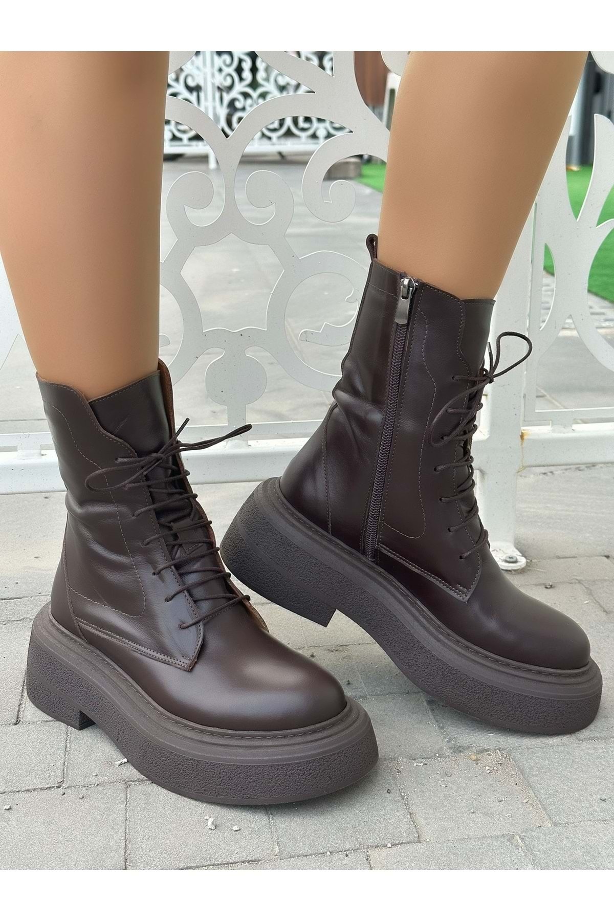 Kadın Kahverengi Bağcıklı Hakiki Deri Bot 20227 Kadın Kahverengi Bağcıklı Hakiki Deri Bot 20227 MLRA20227 40