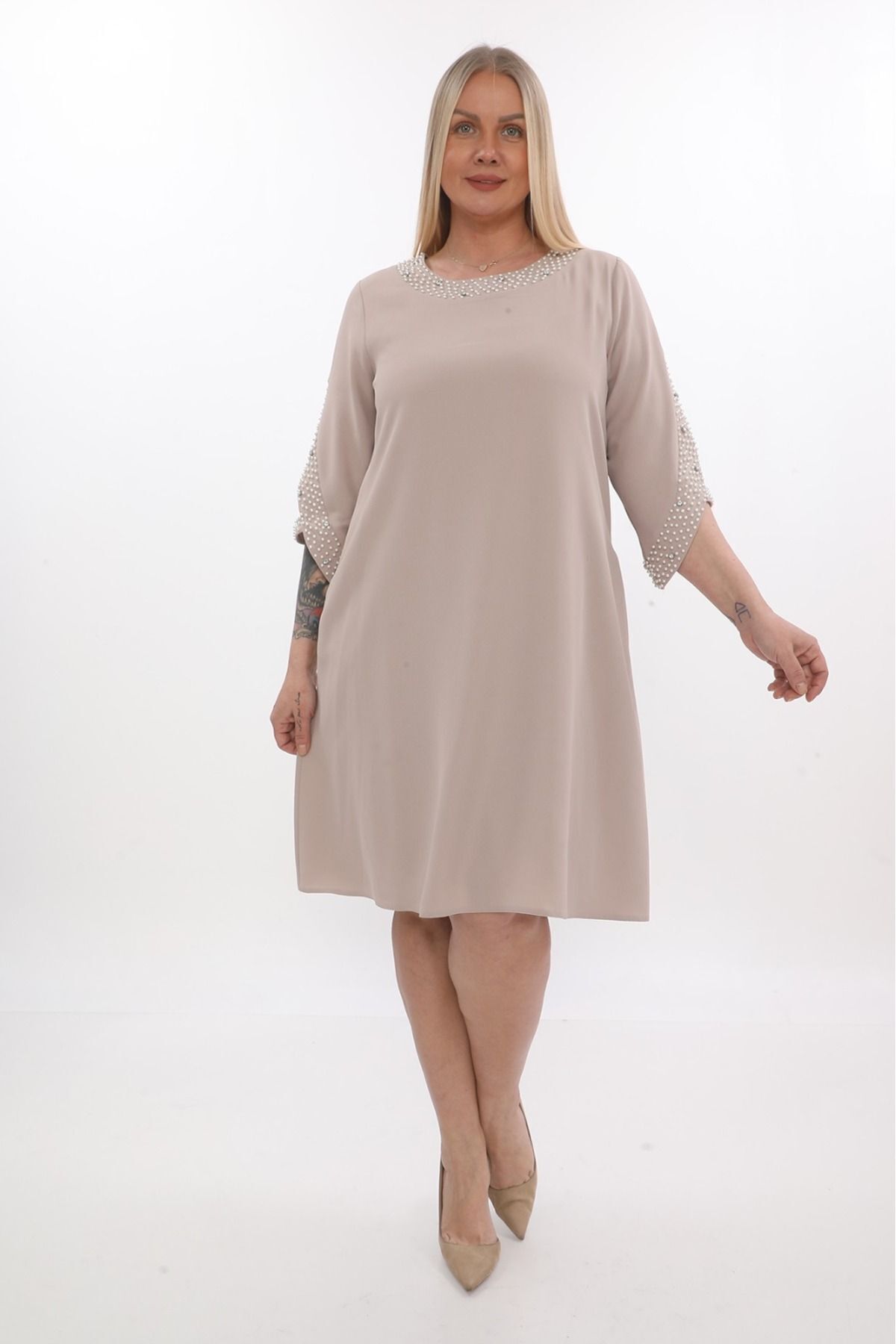 Kadın Dikme Aksesuar Detaylı Midi Büyük Beden Elbise Kadın Dikme Aksesuar Detaylı Midi Büyük Beden Elbise MDP5525 48