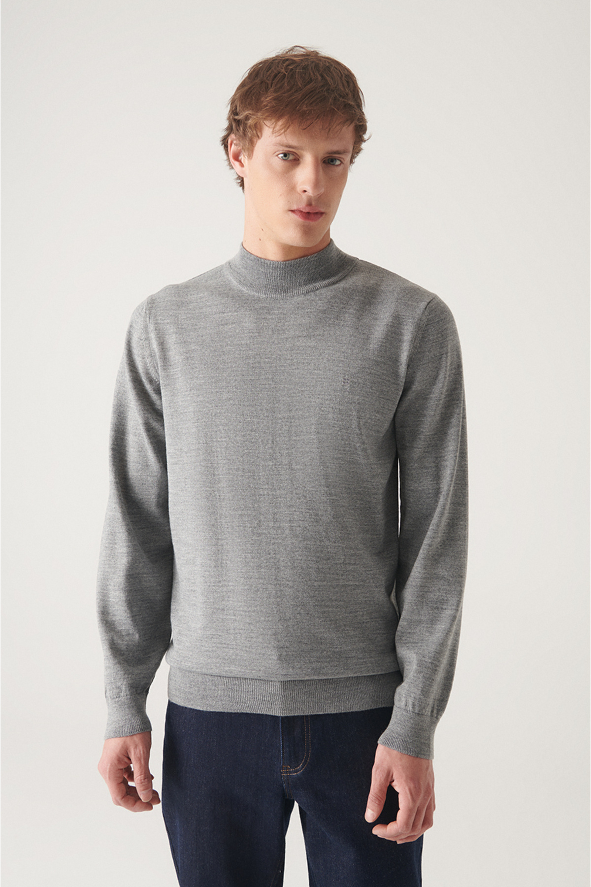 Erkek Gri Yarım Balıkçı Yaka Yün Karışımlı Triko Kazak E005015 Erkek Gri Yarım Balıkçı Yaka Yün Karışımlı Triko Kazak E005015 3XL