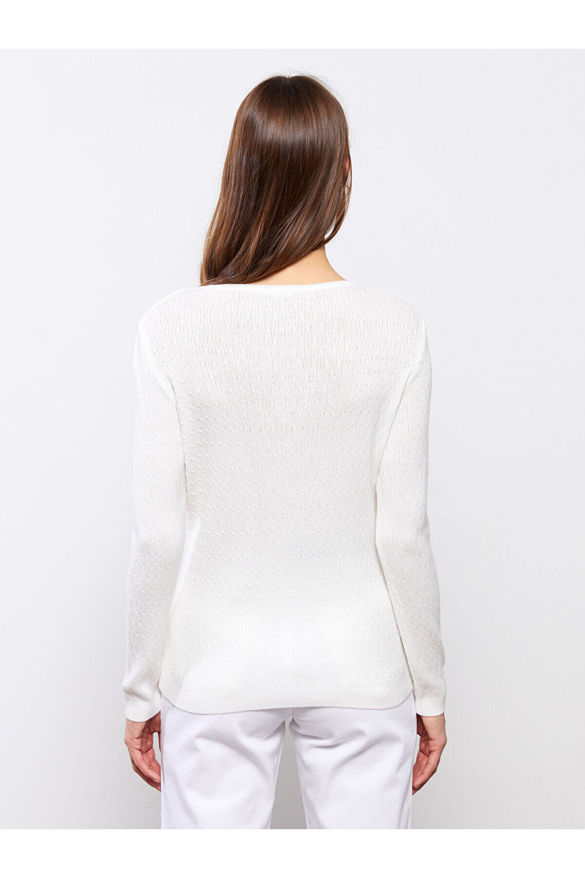 Bisiklet Yaka Kendinden Desenli Uzun Kollu Kadın Triko Kazak Bisiklet Yaka Kendinden Desenli Uzun Kollu Kadın Triko Kazak W20321Z8 3XL