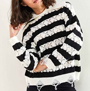 Kadın Polo Yaka Yırtık Desenli Triko Kazak Kadın Polo Yaka Yırtık Desenli Triko Kazak 20223216 Standart