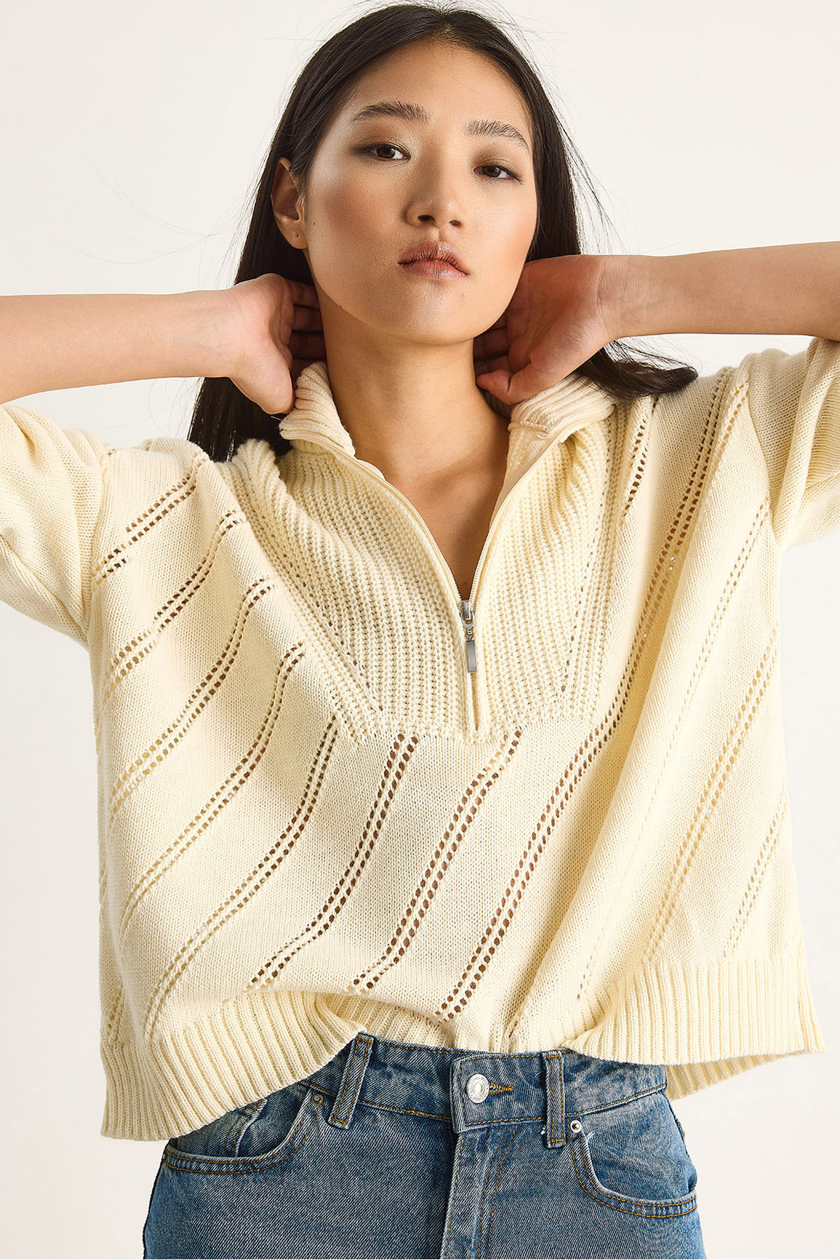 Kadın Fermuarlı Balıkçı Yaka Oversize Triko Kazak Kadın Fermuarlı Balıkçı Yaka Oversize Triko Kazak 20223202 Standart