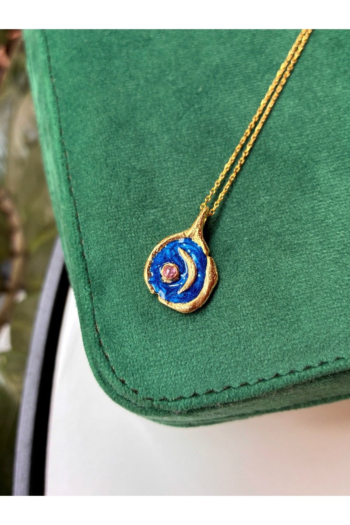 Lacivert Mineli Papatya Çiçek Gümüş Kolye Lacivert Mineli Papatya Çiçek Gümüş Kolye Kl-0686 تک سایز