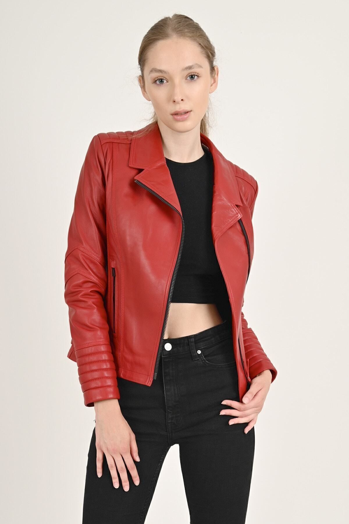 Alexa Kadın Kırmızı Biker Hakiki Deri Ceket Beden Ölçüleri Görselde Alexa Kadın Kırmızı Biker Hakiki Deri Ceket Beden Ölçüleri Görselde W4048HBH 44