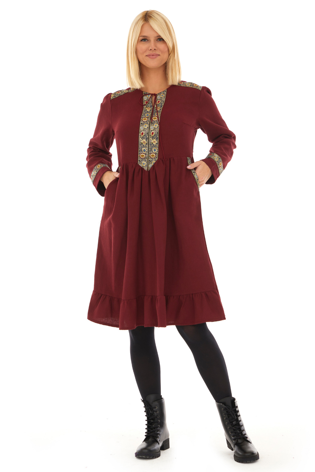 Pazen Uzun Kol Bordo Nakışlı Kısa Elbise Pazen Uzun Kol Bordo Nakışlı Kısa Elbise ELB.K.013601 XL