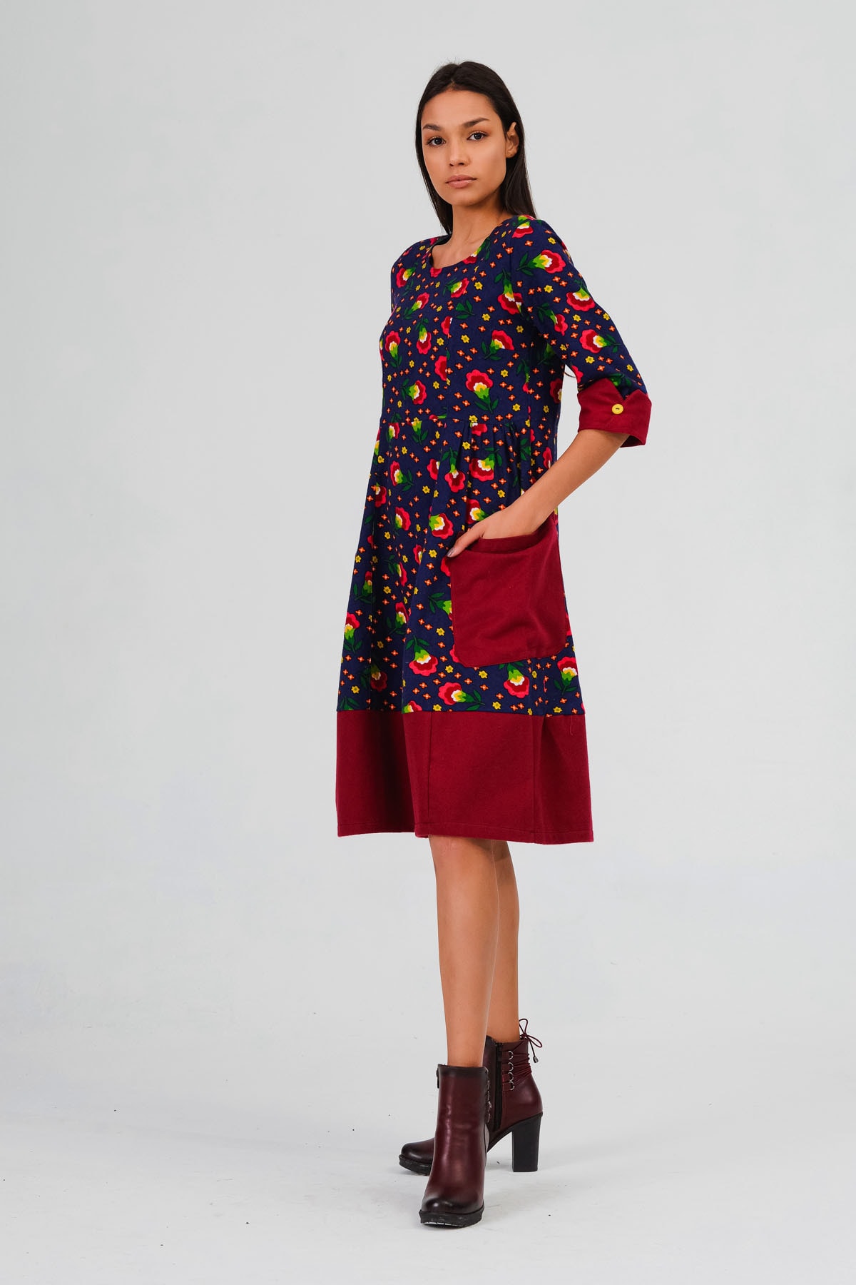 Pazen Uzun Kol Petrol Nakışlı Kısa Elbise Pazen Uzun Kol Petrol Nakışlı Kısa Elbise ELB.K.013601 XL