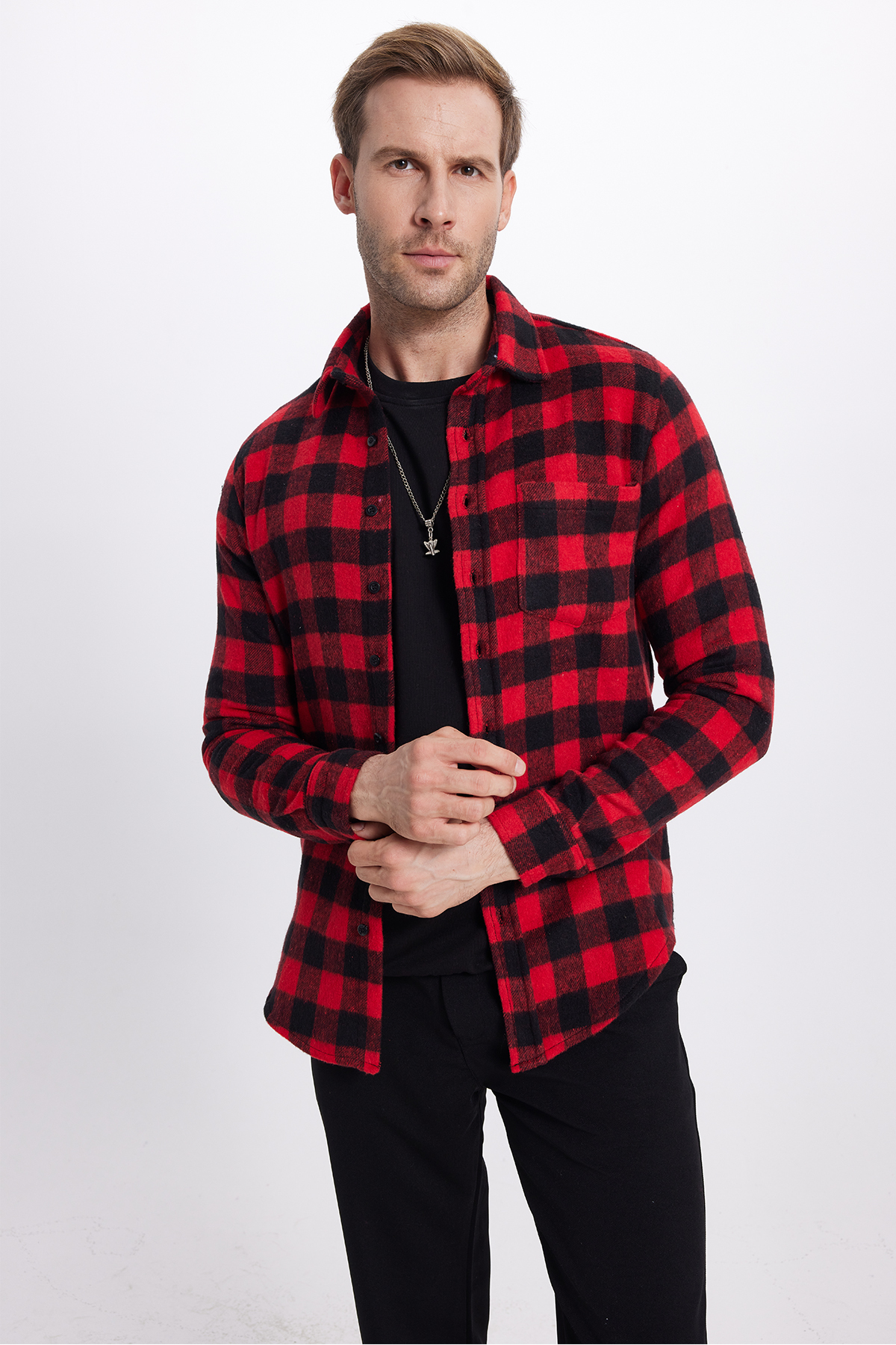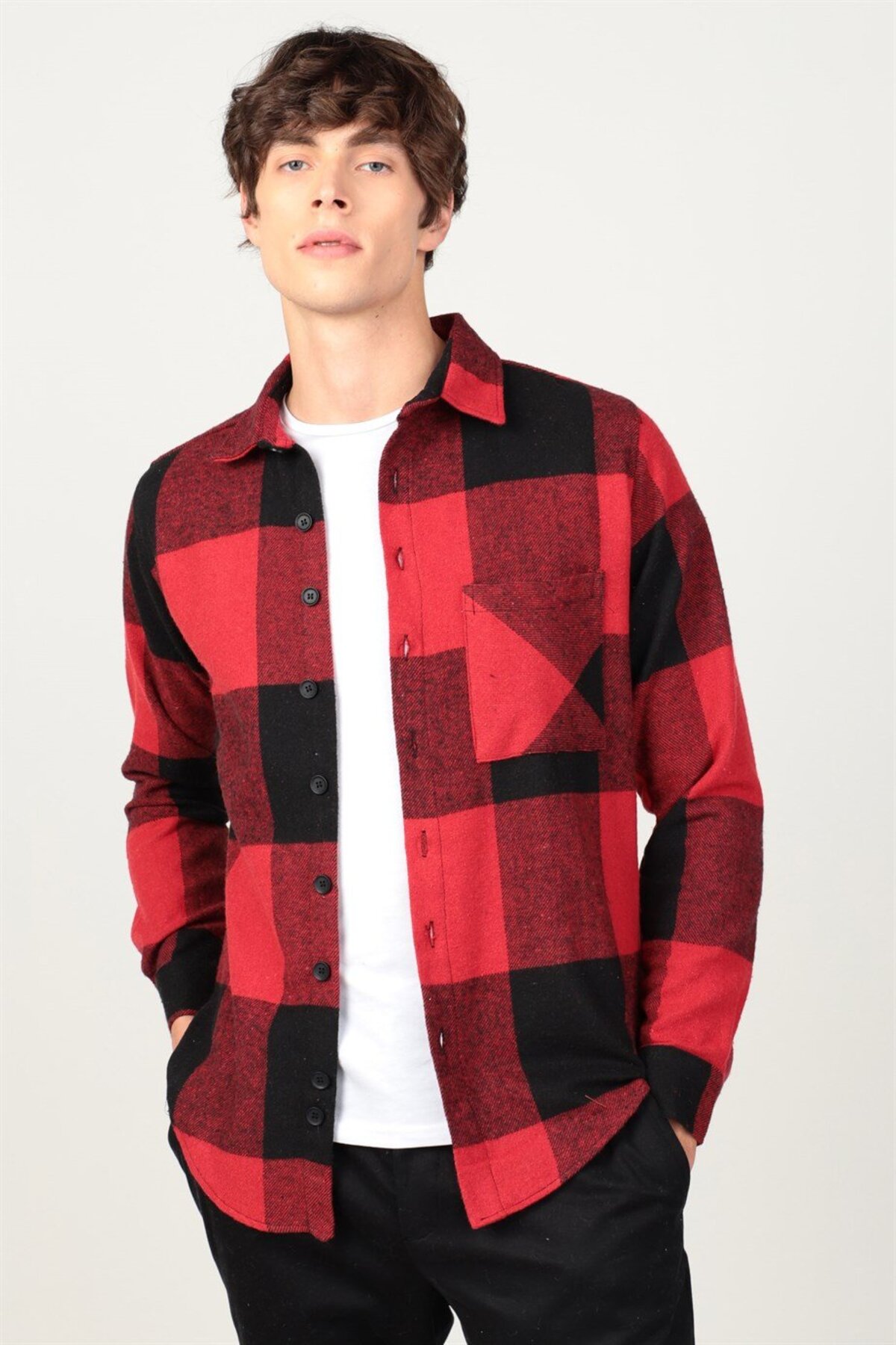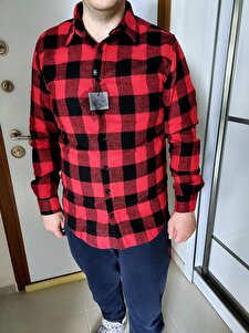 Slim Fit Uzun Kollu Kışlık Oduncu Kareli Erkek Kırmızı Gömlek Slim Fit Uzun Kollu Kışlık Oduncu Kareli Erkek Kırmızı Gömlek DR230009-400 2XL