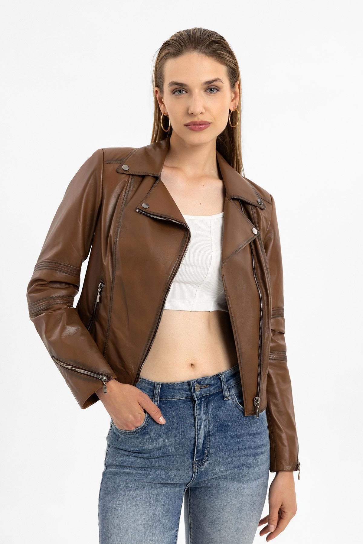 Kadın Hakiki Siyah Deri Mont Kadın Hakiki Siyah Deri Mont pnk022 4XL
