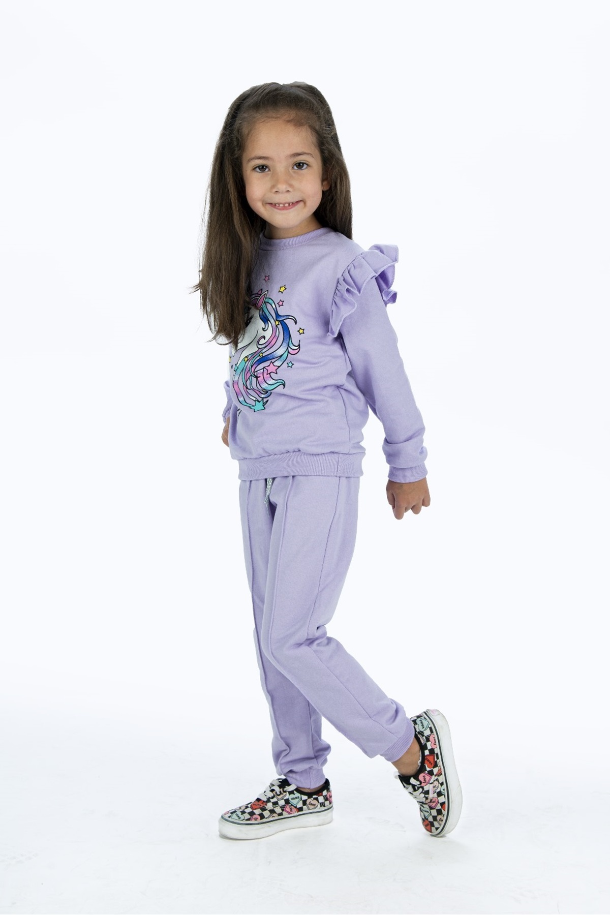 Kız Çocuk Atlı 2iplik Kumaş Eşofman Takımı MNK0427 LİLA Kız Çocuk Atlı 2iplik Kumaş Eşofman Takımı MNK0427 LİLA 9-10 Yaş