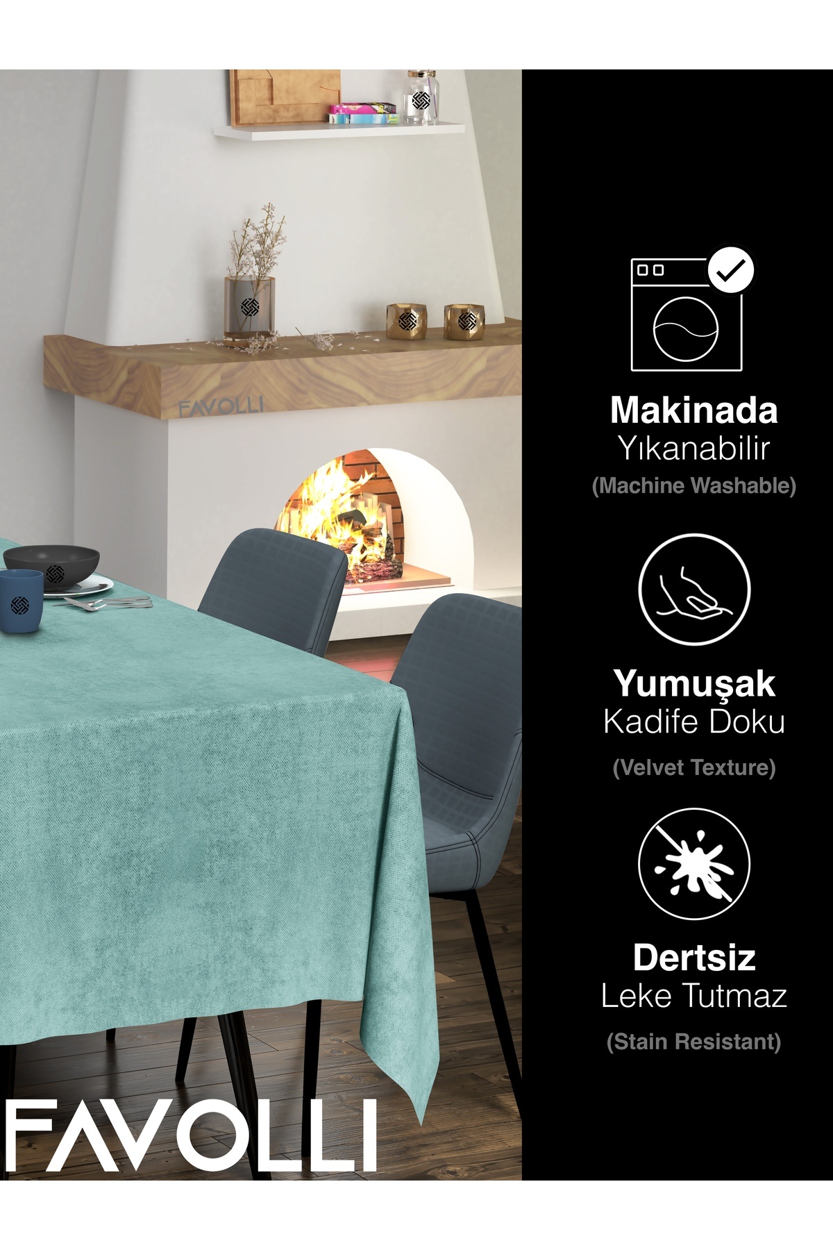 Kadife Dokulu Sis Mavisi Masa Örtüsü Kadife Dokulu Sis Mavisi Masa Örtüsü Dream Tableclouth 150 x 260