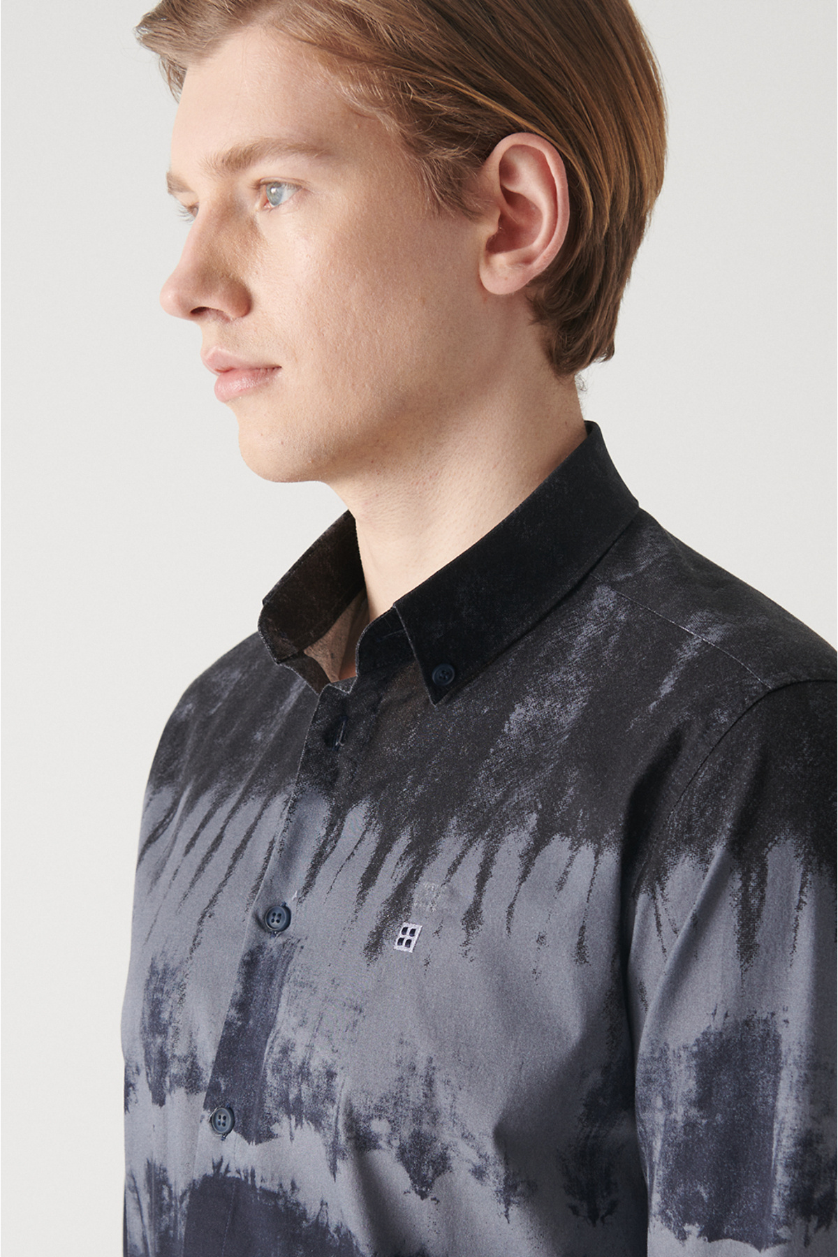 Erkek Lacivert Baskılı Düğmeli Yaka %100 Pamuk Gömlek A22Y2070 Erkek Lacivert Baskılı Düğmeli Yaka %100 Pamuk Gömlek A22Y2070 2XL