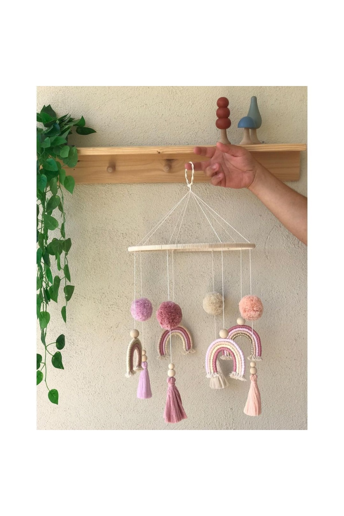 Çocuk/bebek Odası Beşik Dekoru Ponponlu Gökkuşaklı Renkli Eğitici Dönence Çocuk/bebek Odası Beşik Dekoru Ponponlu Gökkuşaklı Renkli Eğitici Dönence MAKROME تک سایز