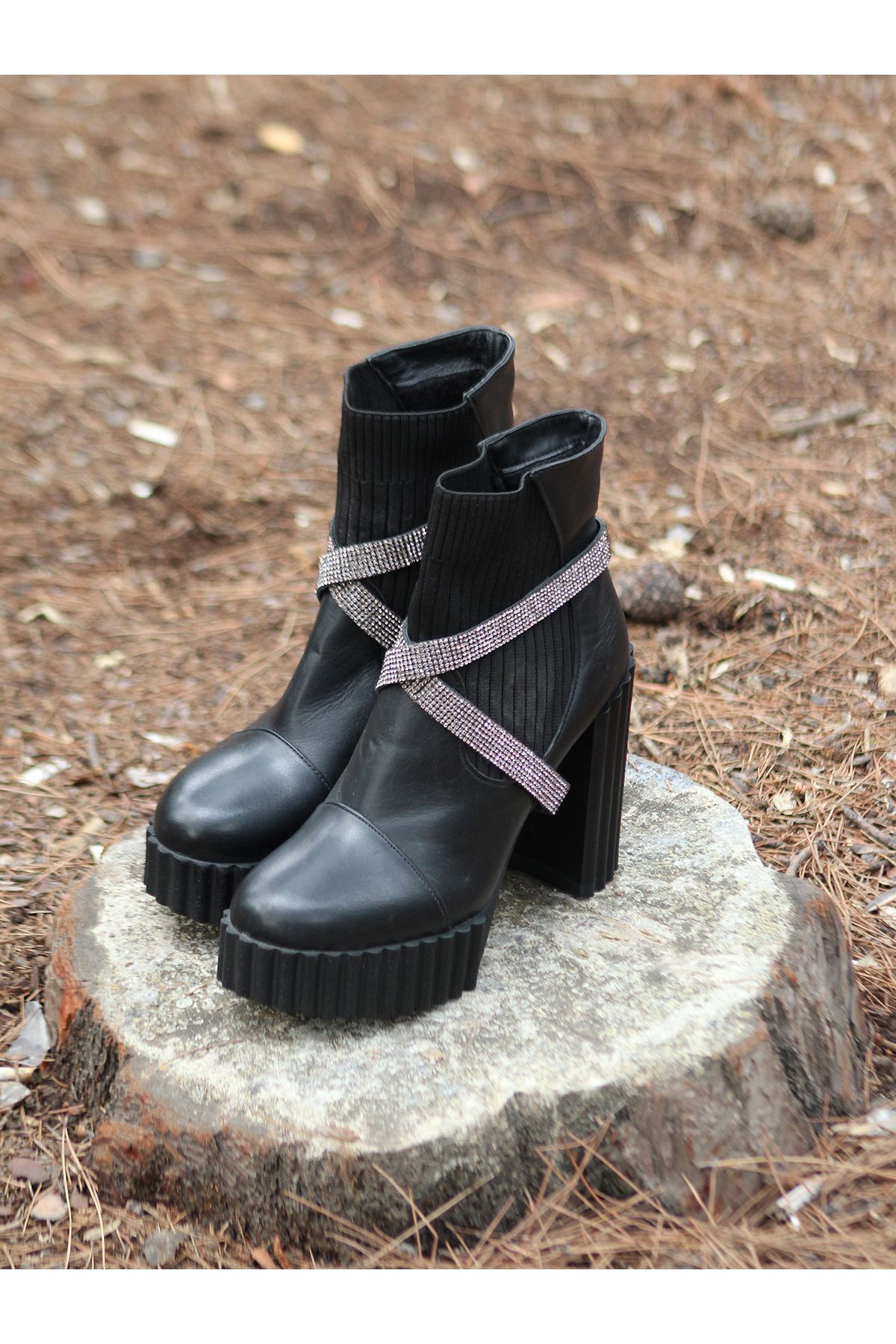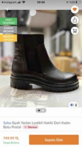 Siyah Yanları Lastikli Hakiki Deri Kadın Botu Postal Siyah Yanları Lastikli Hakiki Deri Kadın Botu Postal Bhdrbot31 40