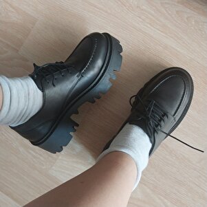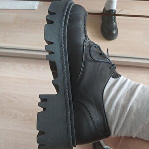 Hakiki Deri Siyah Kadın Tırtıklı Platform Taban Loafer Ayakkabı TRC-4003 Hakiki Deri Siyah Kadın Tırtıklı Platform Taban Loafer Ayakkabı TRC-4003 40