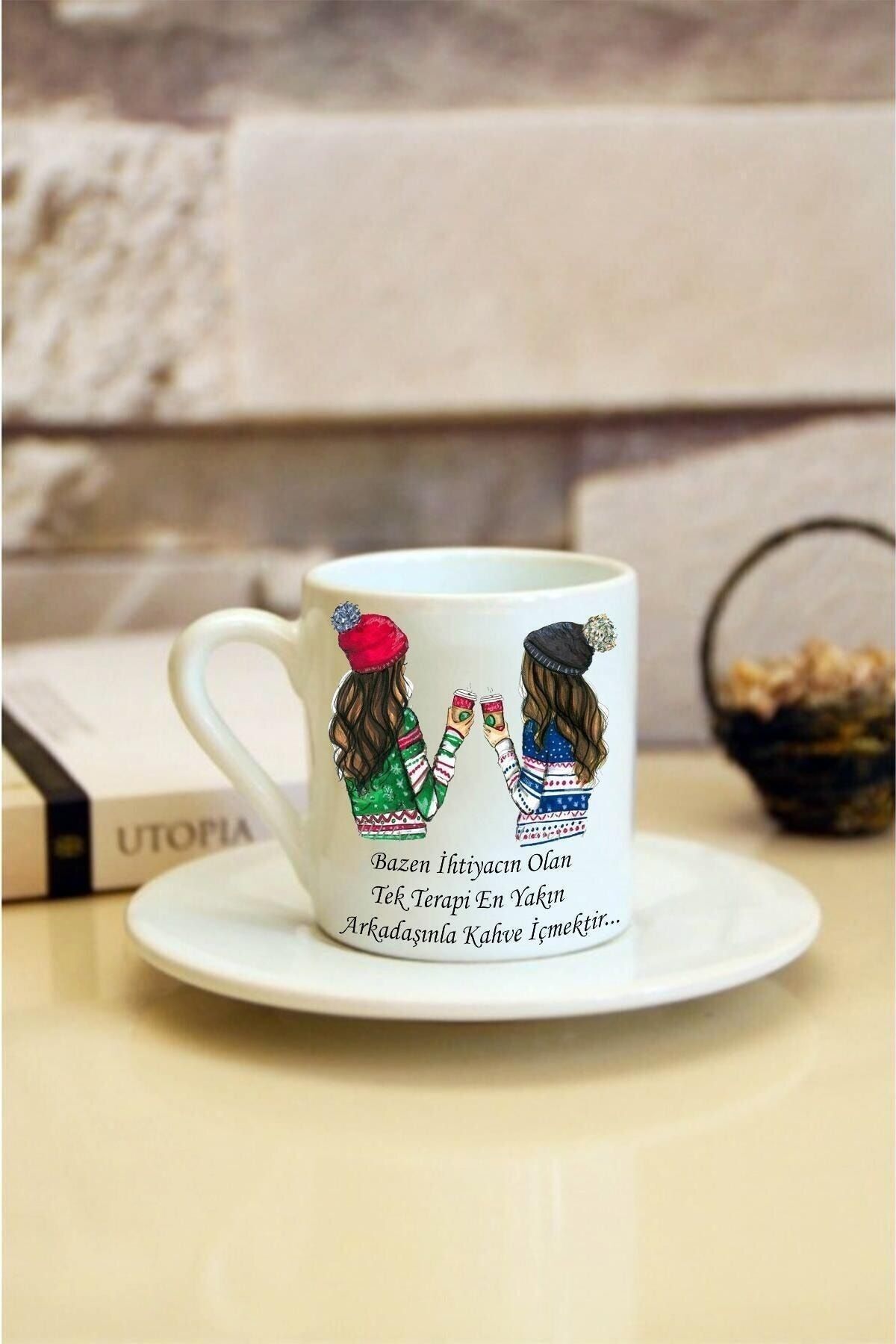 Dünya Tek Biz Ikimiz Arkadaş Temalı Baskılı Beyaz Türk Kahvesi Fincanı Dünya Tek Biz Ikimiz Arkadaş Temalı Baskılı Beyaz Türk Kahvesi Fincanı EZ-KF-0273 تک سایز