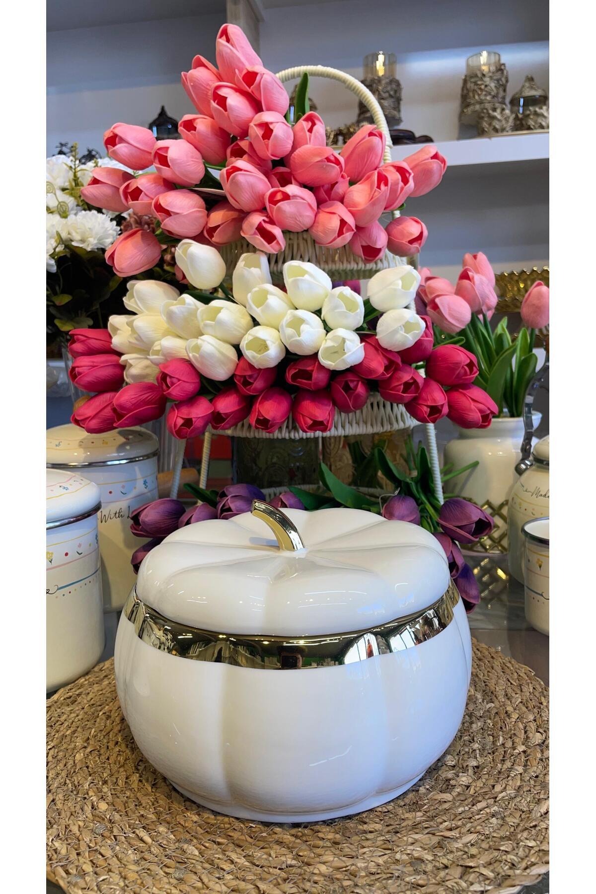 Gold Beyaz Balkabağı Kavanoz Gold Beyaz Balkabağı Kavanoz Balkabağı kavanoz şekerlik تک سایز