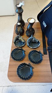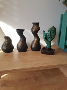 Dekoratif Siyah - Gold Çatlatma Vazo 3'lü Set Dekoratif Siyah - Gold Çatlatma Vazo 3'lü Set 42444VM-3 تک سایز