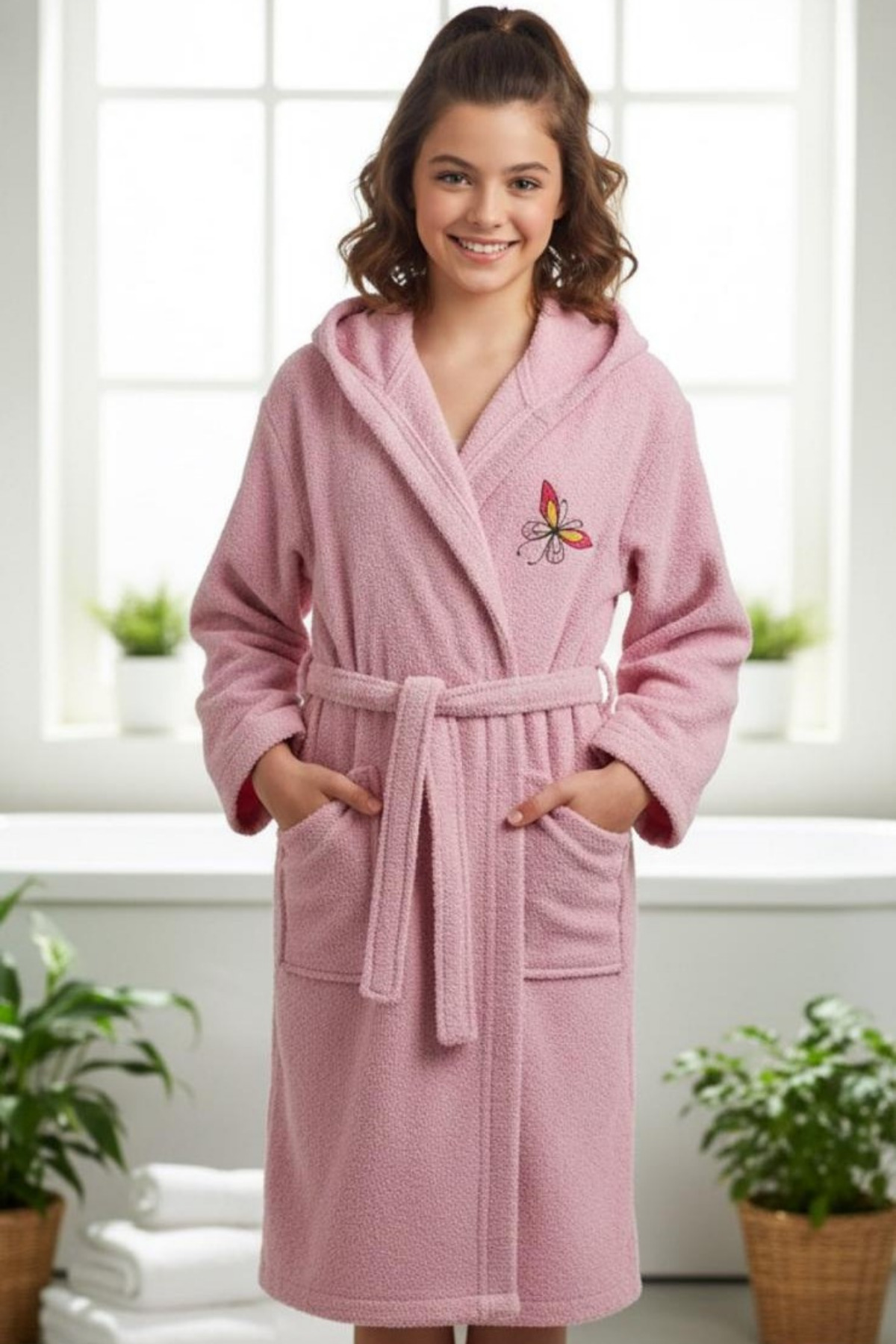 Düz Ve Kapüşonlu Pamuklu Çocuk Bornozu Düz Ve Kapüşonlu Pamuklu Çocuk Bornozu effe0000006 Standart