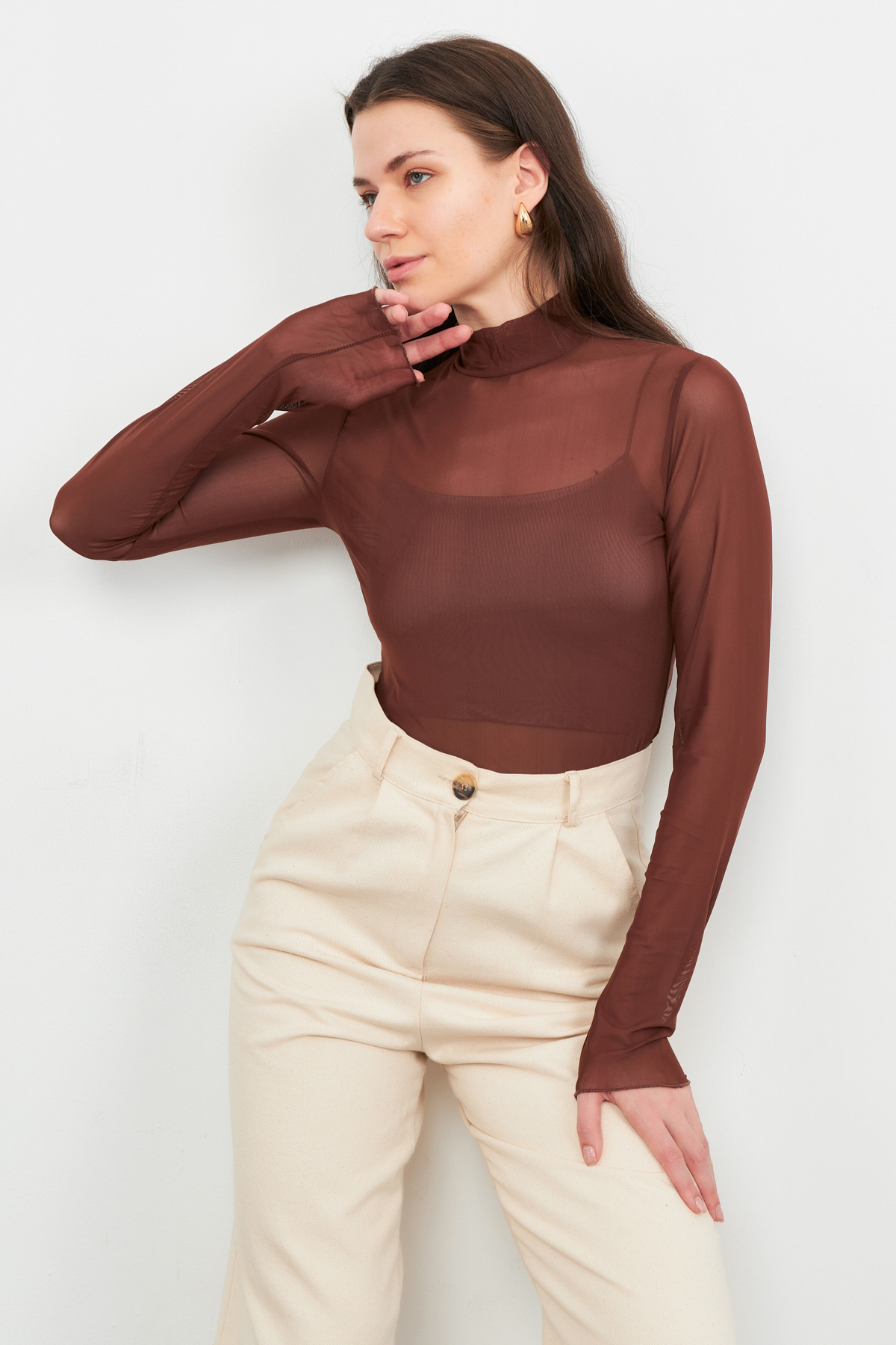 Kadın Siyah Tül Transparan Bluz Kadın Siyah Tül Transparan Bluz TPZ3201 XL