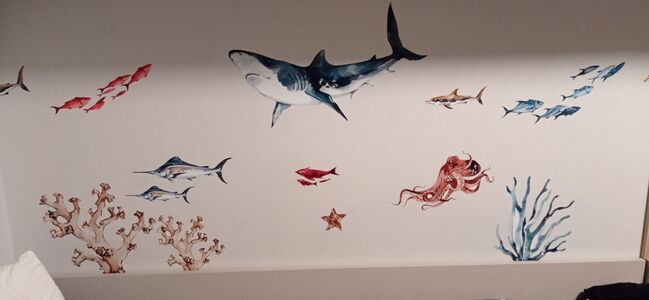 Denizde Yaşam Büyük Köpek Balığı Ahtapot Kılıç Balığı Ve Mercanlar 2xl Duvar Sticker Seti Denizde Yaşam Büyük Köpek Balığı Ahtapot Kılıç Balığı Ve Mercanlar 2xl Duvar Sticker Seti KTMK00A07 70 x 120