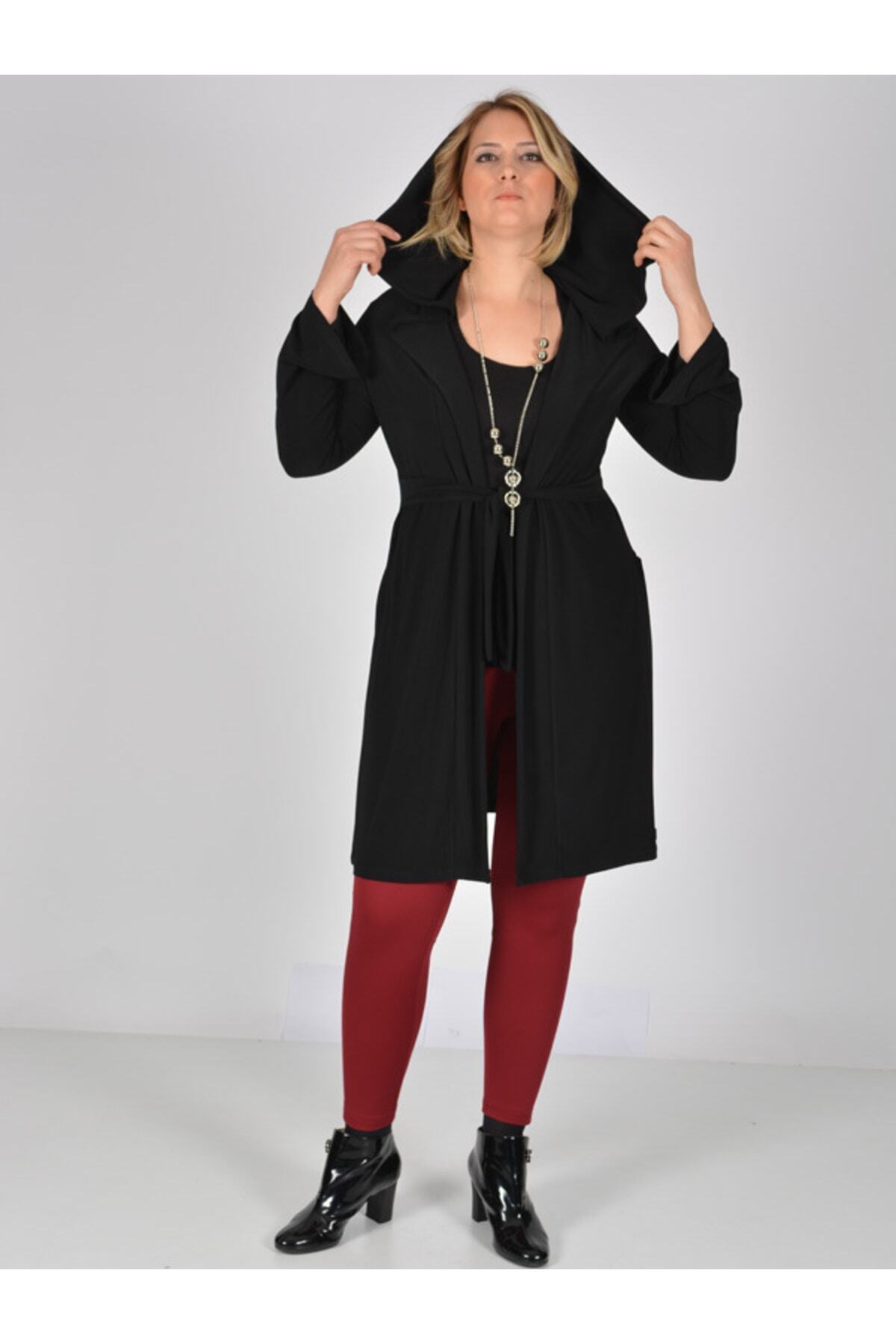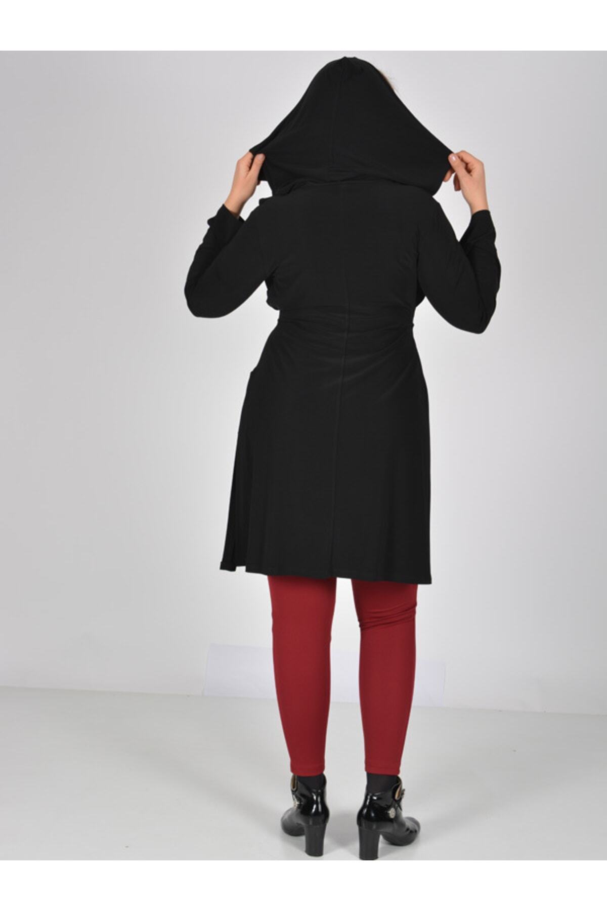 Kadın Siyah Kapüşonlu Kuşaklı Ceket 1016SS Kadın Siyah Kapüşonlu Kuşaklı Ceket 1016SS 44