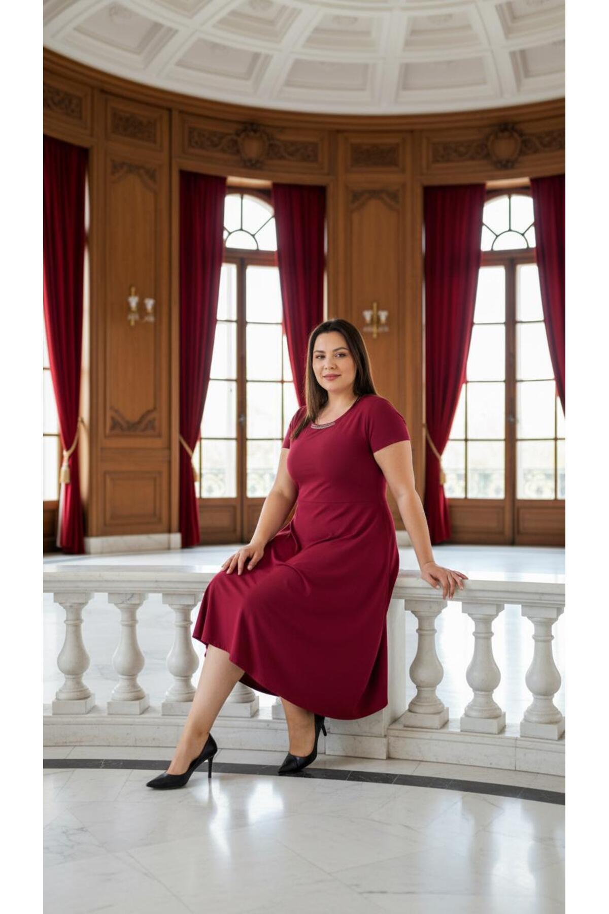 Kadın Bordo Taş Aksesuarlı Abiye Elbise 4088B Kadın Bordo Taş Aksesuarlı Abiye Elbise 4088B 54