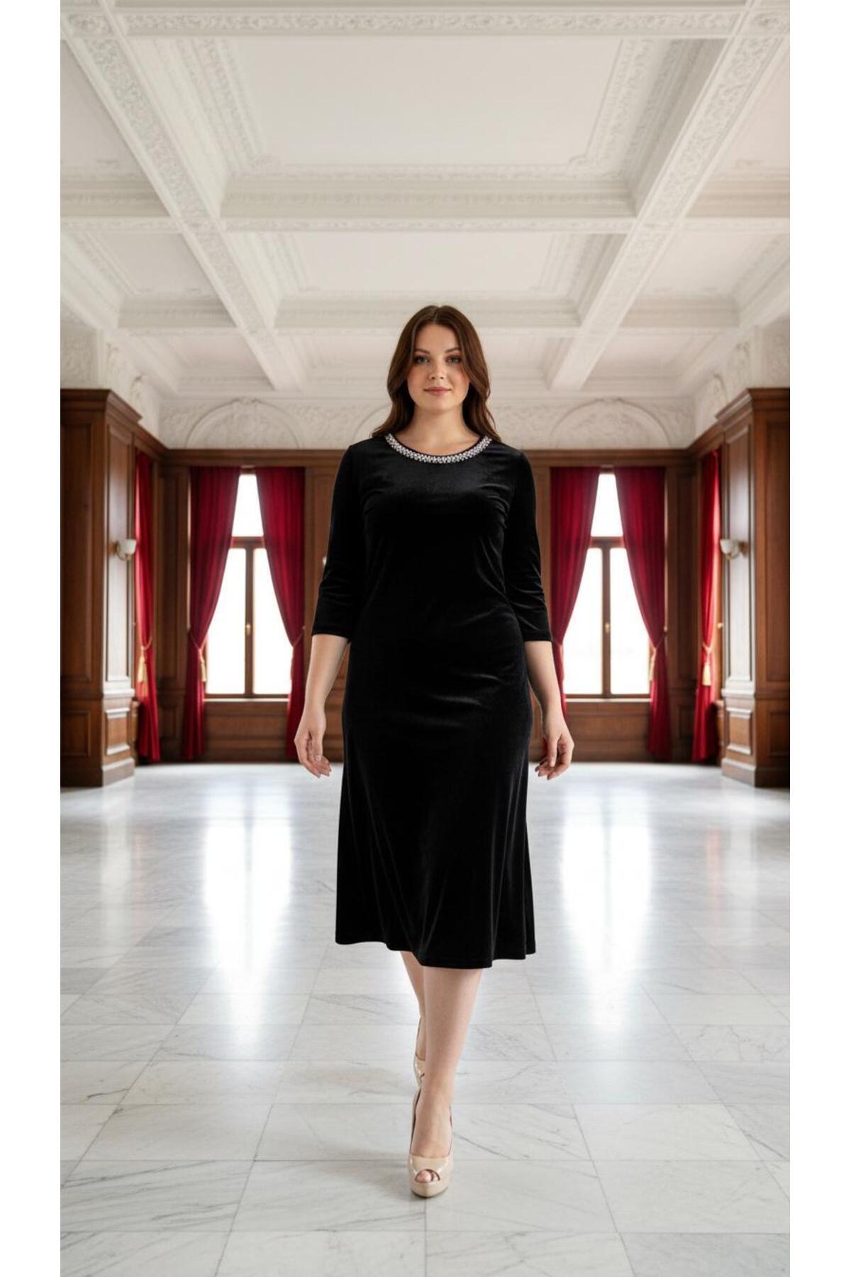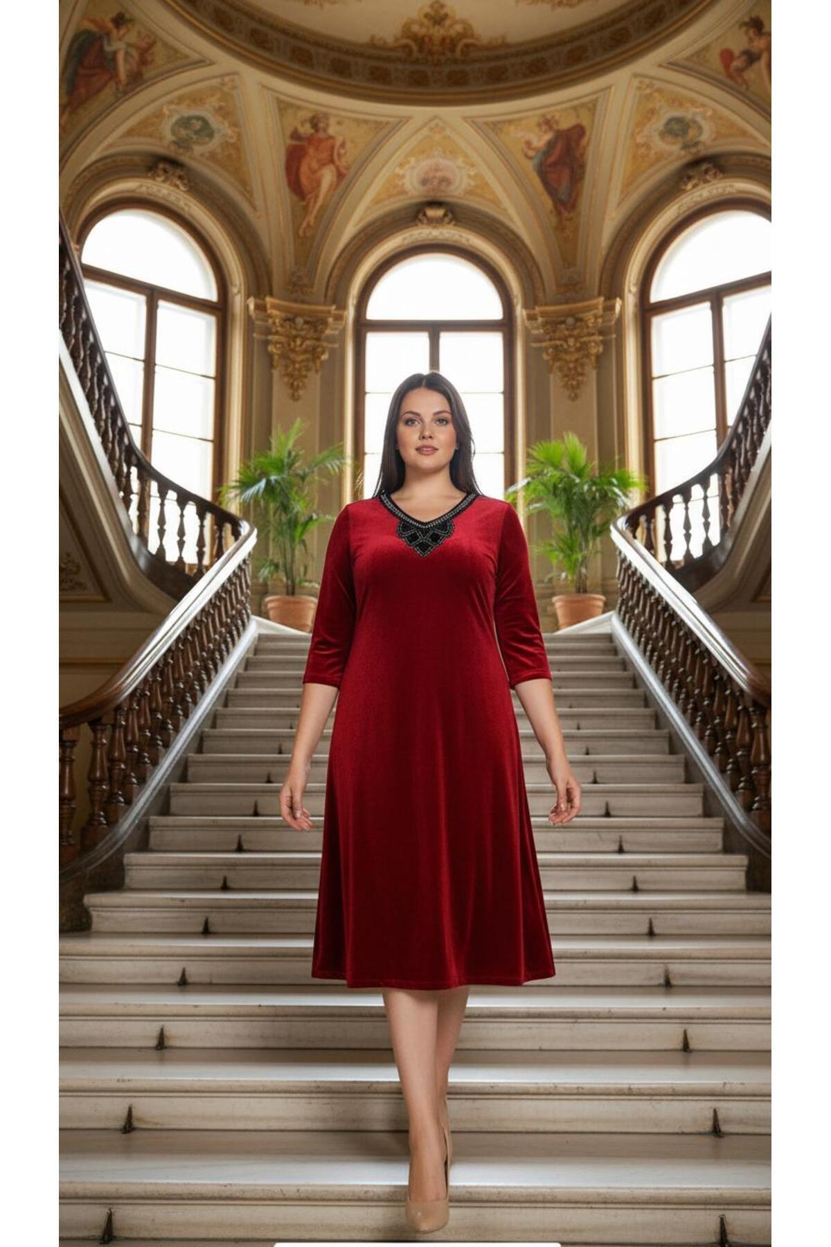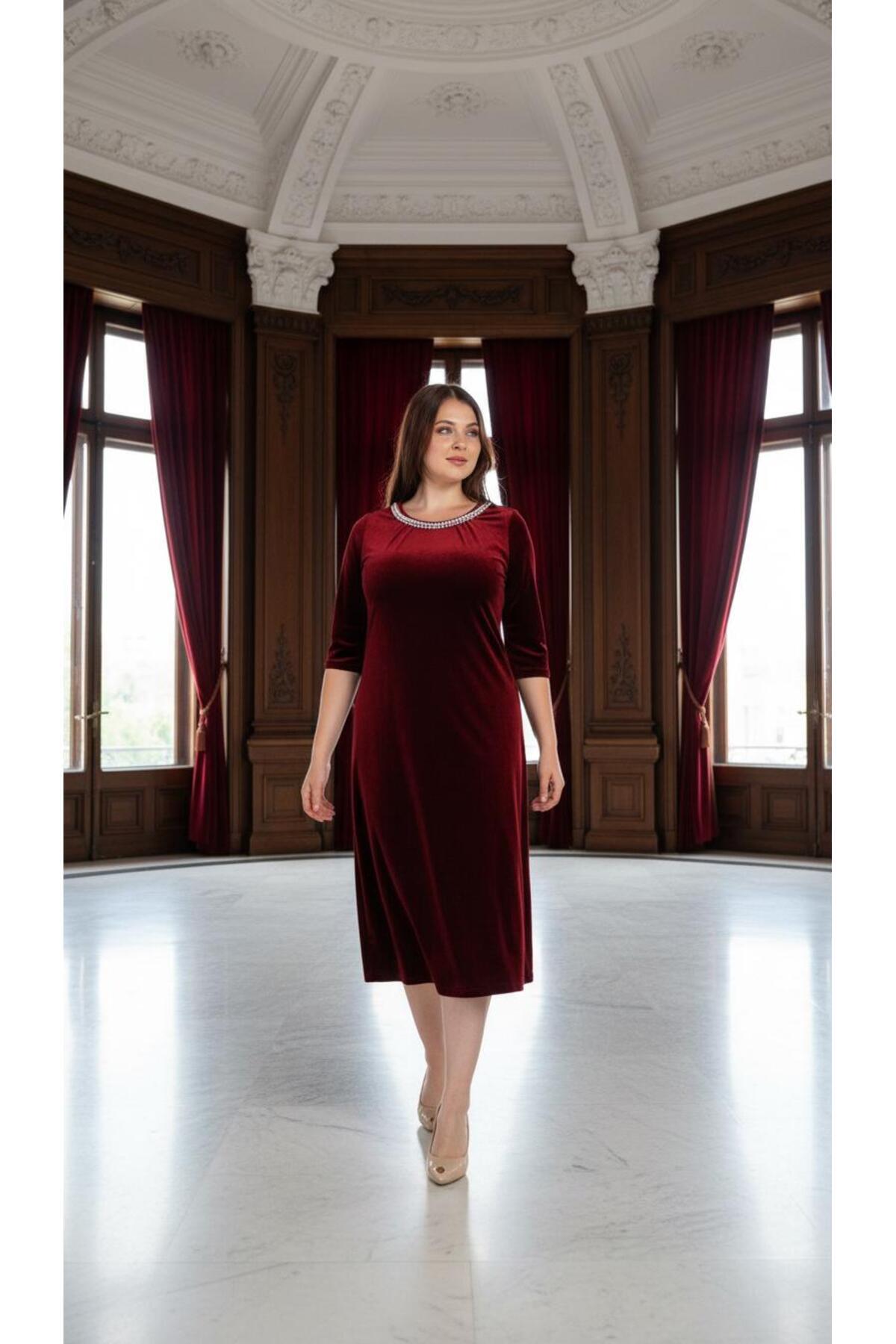 Kadın Yeşil Taş İşli Kadife Abiye Elbise 4072AY Kadın Yeşil Taş İşli Kadife Abiye Elbise 4072AY 54