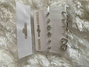 Kalp Ve Papatya Tasarımlı Halka Küpeli 12li Küpe Seti Kalp Ve Papatya Tasarımlı Halka Küpeli 12li Küpe Seti KP02,09,2403A تک سایز