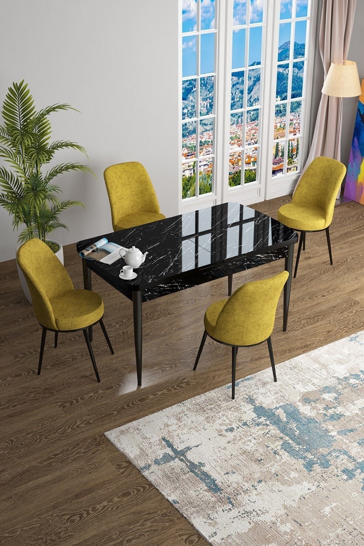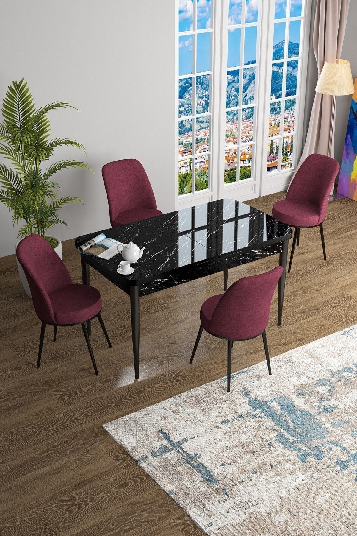 Han Serisi, Siyah Mermer Desen 70x114 Açılabilir Mdf Mutfak Masa Takımı, 4 Gülkurusu Sandalye Han Serisi, Siyah Mermer Desen 70x114 Açılabilir Mdf Mutfak Masa Takımı, 4 Gülkurusu Sandalye 02-HAN01SYHMR04 تک سایز