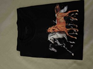 Siyah Renk Basic At Baskılı Erkek T-shirt Siyah Renk Basic At Baskılı Erkek T-shirt NTR4005 2XL