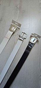 Kadın Taşlı Gold Tokalı Siyah-beyaz 2,li Kemer Kadın Taşlı Gold Tokalı Siyah-beyaz 2,li Kemer KXT29969141 120 CM