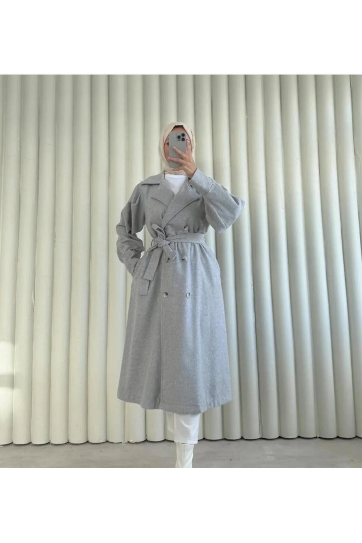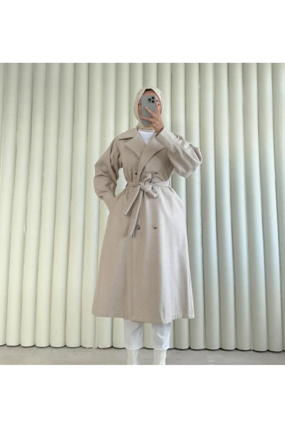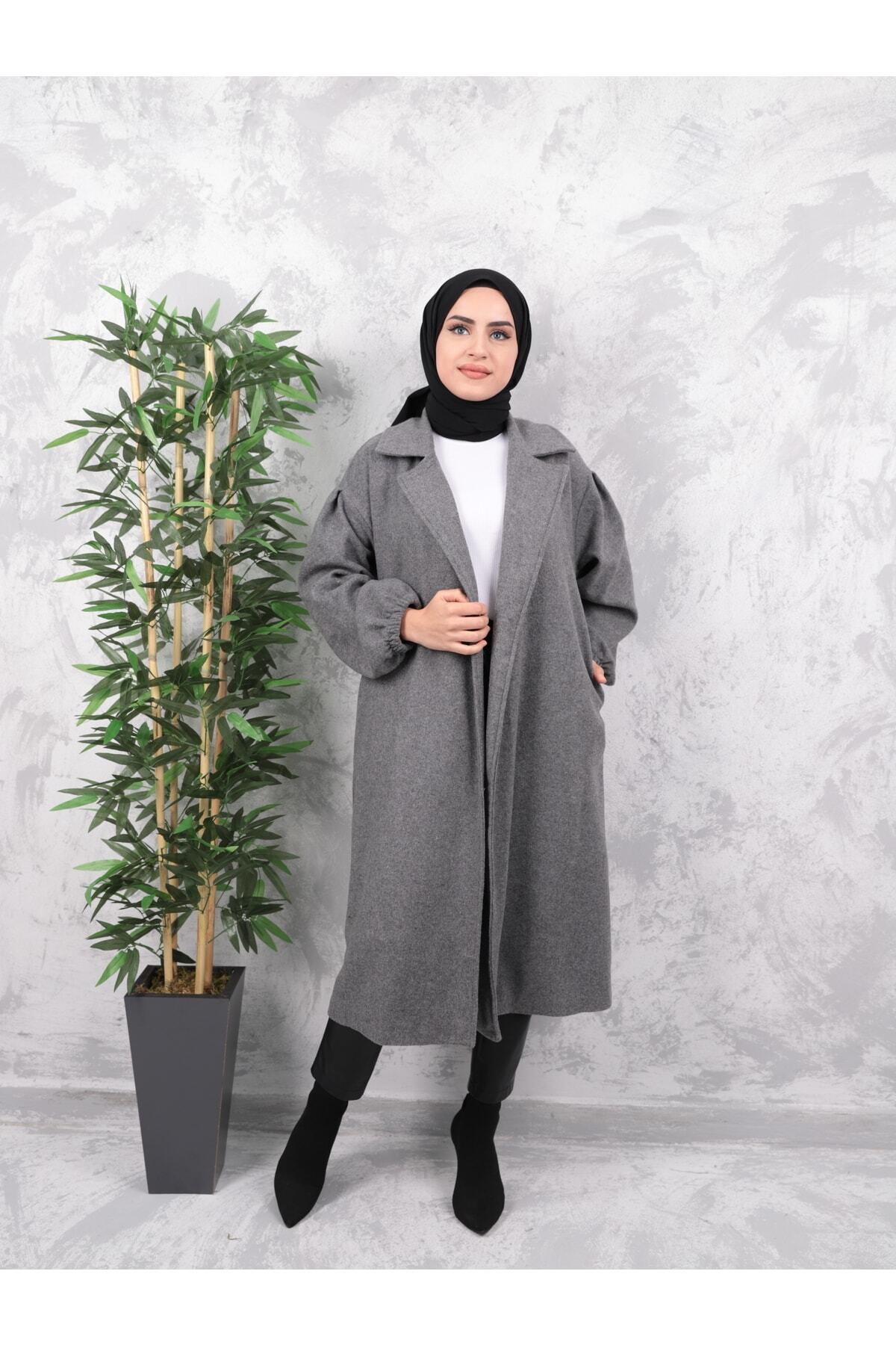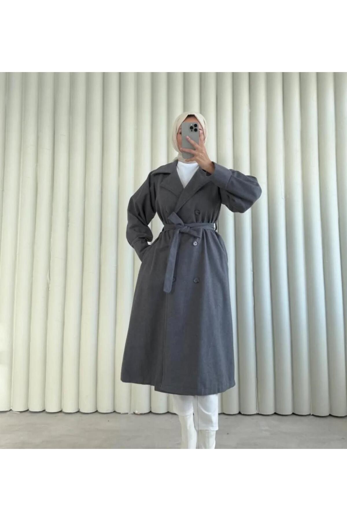 Kolları Büzgülü Kuşaklı Kadın Tesettür Kaban\kaşe Kaban Kolları Büzgülü Kuşaklı Kadın Tesettür Kaban\kaşe Kaban 8002 2