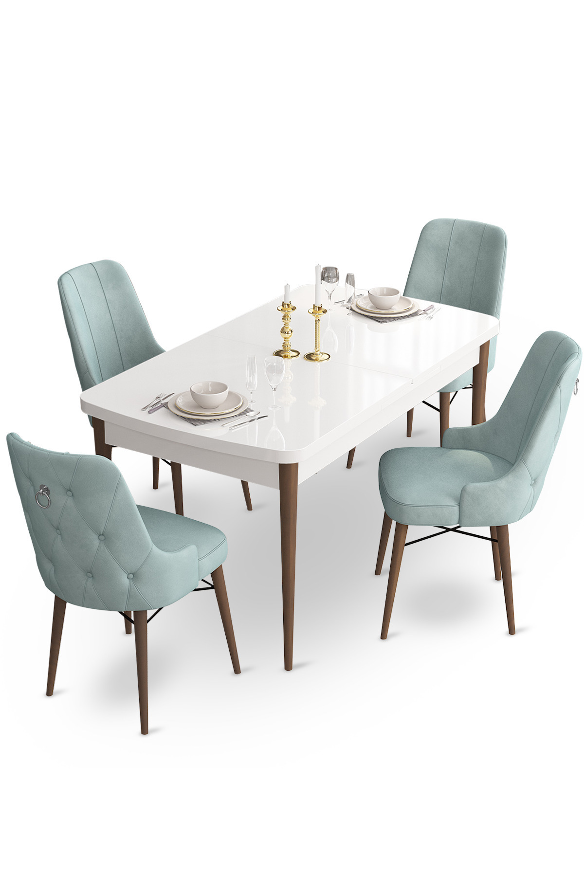 Taç Serisi Açılabilir Mutfak Masası Takımı 80x132 Beyaz Ceviz Masa 4 Su Yeşili Sandalye Taç Serisi Açılabilir Mutfak Masası Takımı 80x132 Beyaz Ceviz Masa 4 Su Yeşili Sandalye 02-TAC01BYZCVZ04GMS تک سایز