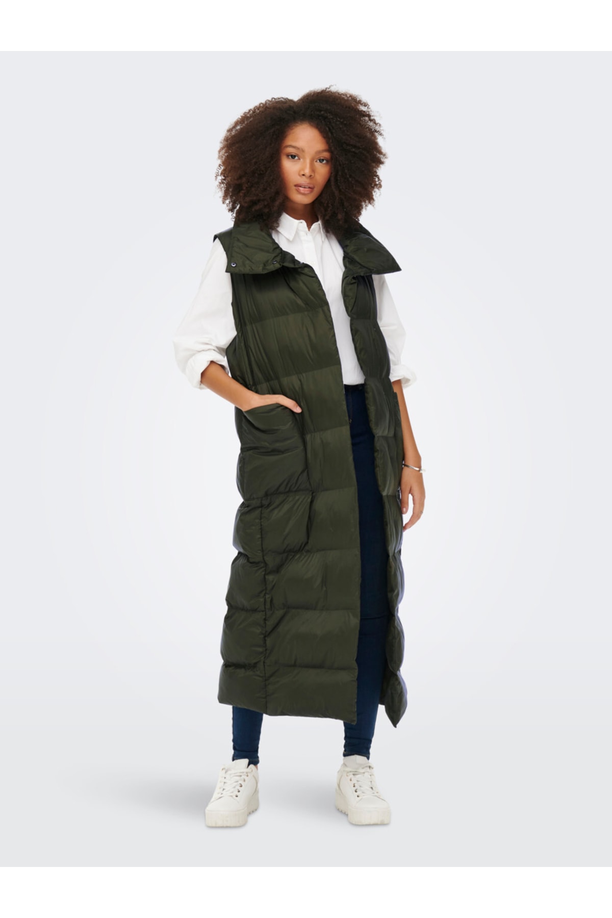 Dik Yaka Gizli Düğmeli Uzun Kapitone Şişme Yelek Dik Yaka Gizli Düğmeli Uzun Kapitone Şişme Yelek 15266863 XL