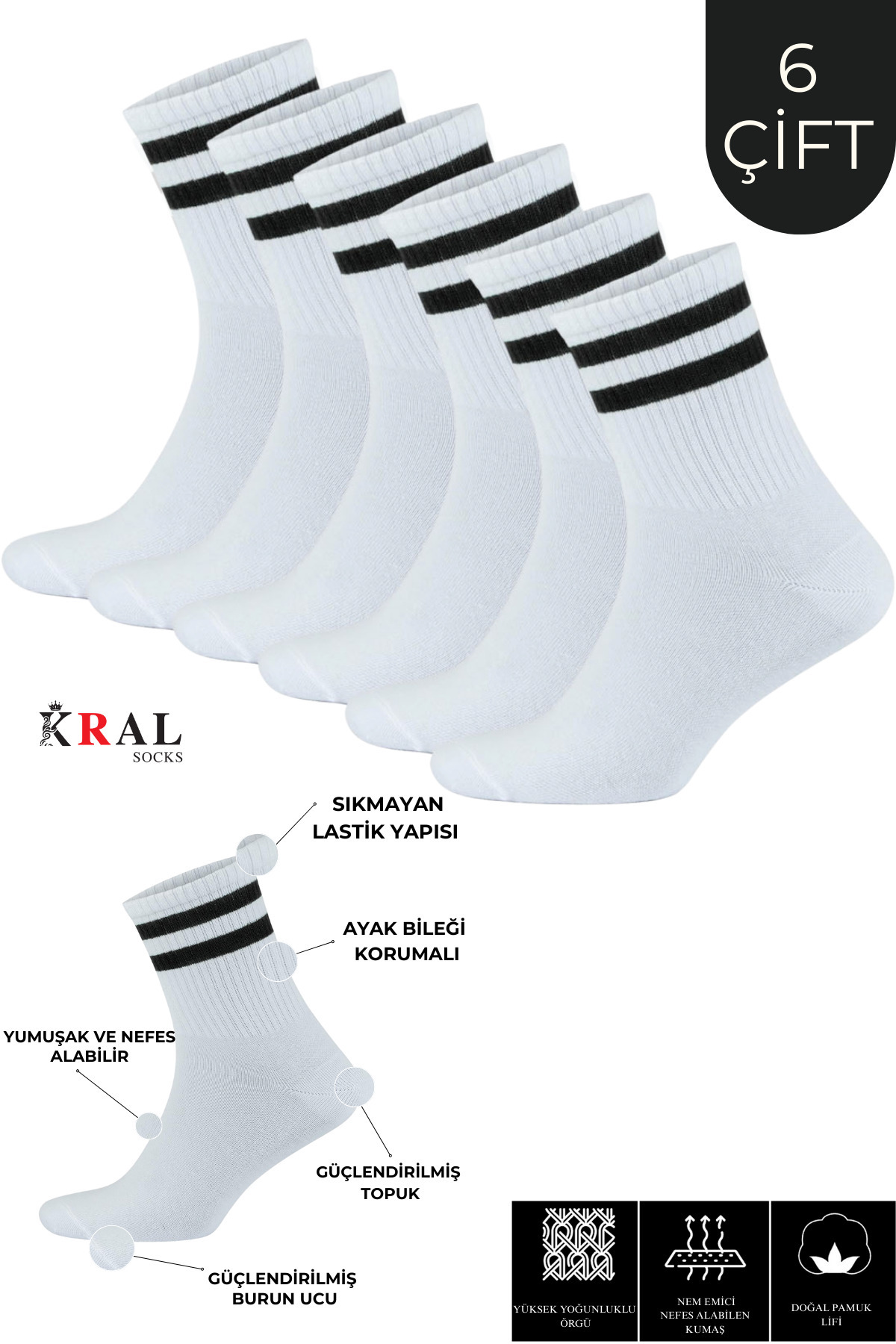 Erkek Kadın (6 ÇİFT) Çizgili Kolej Tenis Çorabı Pamuklu Terletmez Çorap Erkek Kadın (6 ÇİFT) Çizgili Kolej Tenis Çorabı Pamuklu Terletmez Çorap KRLTYSBTSR 42