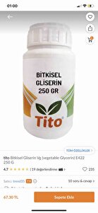 Bitkisel Gliserin Vg (vegetable Glycerin) E422 250 G Bitkisel Gliserin Vg (vegetable Glycerin) E422 250 G 064.300.05 تک سایز