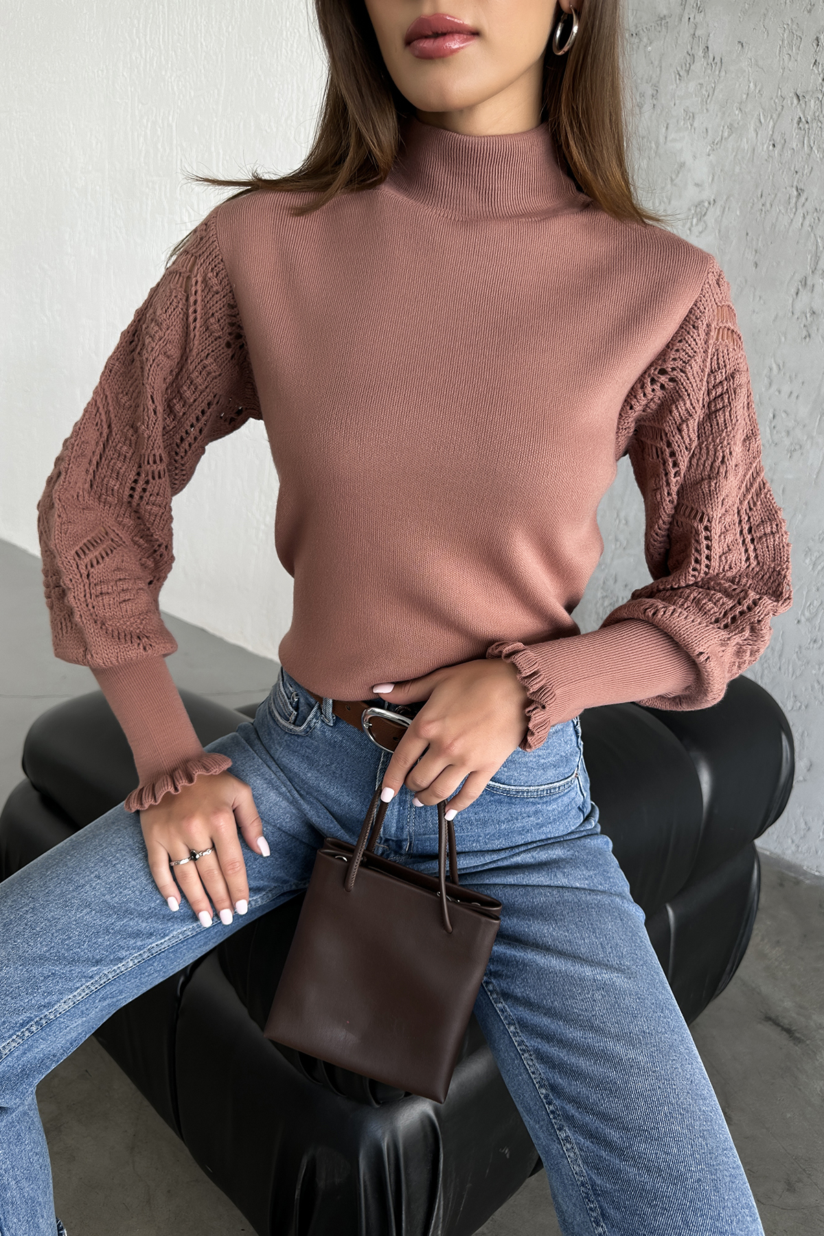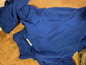 Kadın Saks Yarım Balıkçı Kolu Dantel Detaylı Kazak Kadın Saks Yarım Balıkçı Kolu Dantel Detaylı Kazak NF20417 2XL