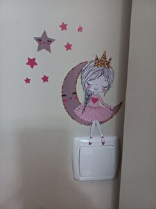 Priz Ayda Oturan Sevimli Kız Çocuk Odası Dekor Priz Sticker Priz Ayda Oturan Sevimli Kız Çocuk Odası Dekor Priz Sticker Panda3262 15 x 15