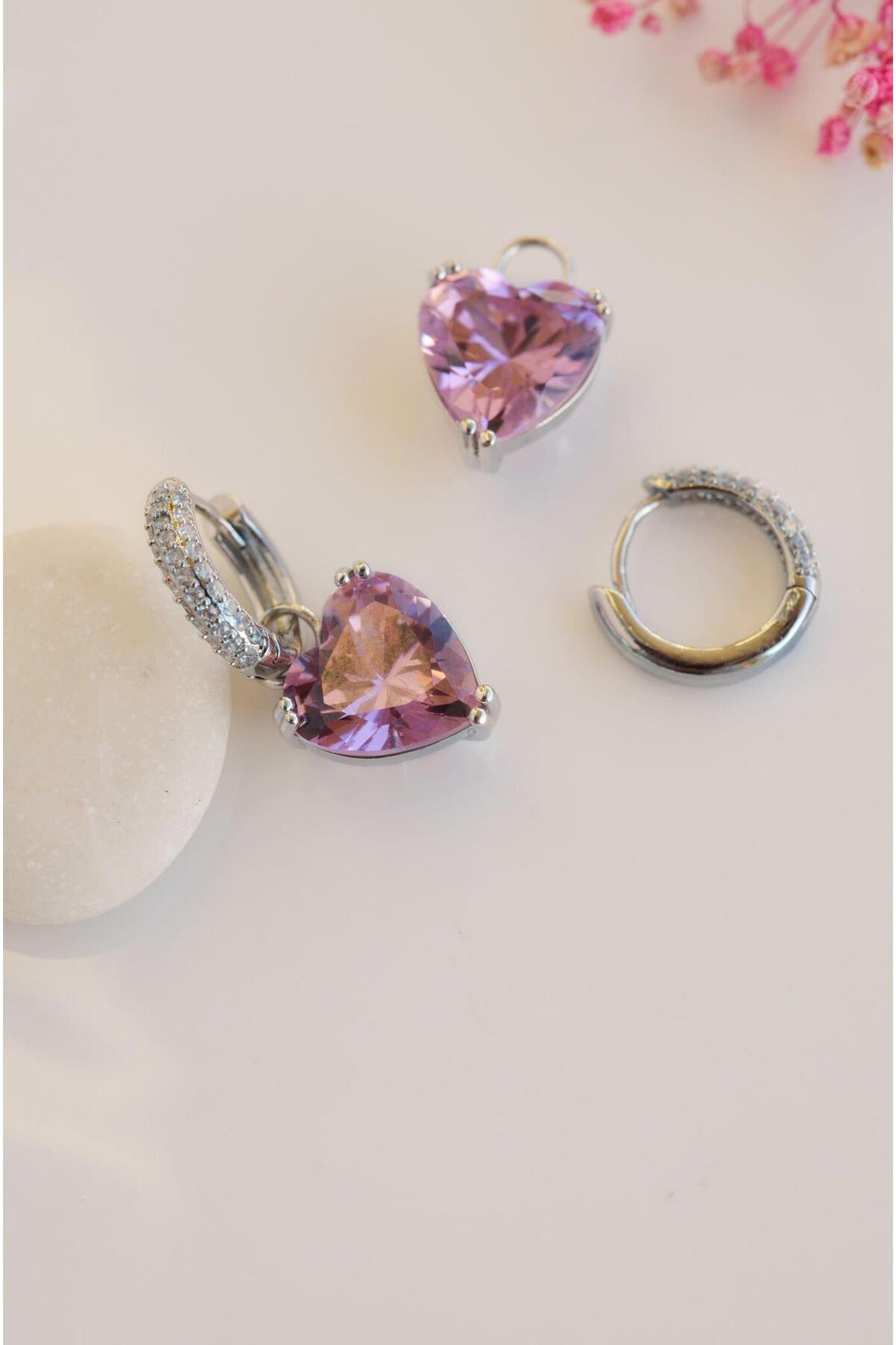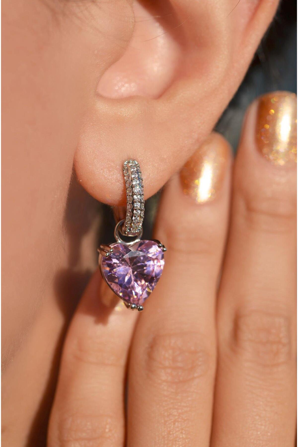 Pembe Zirkon Kalp Sallantılı Küpe Pembe Zirkon Kalp Sallantılı Küpe DEFJQTX4 تک سایز