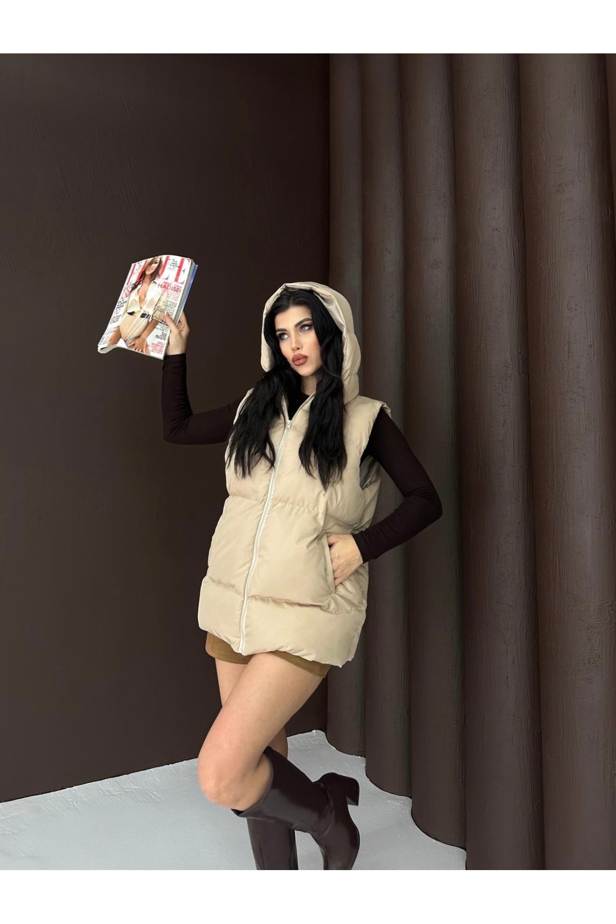 Kadın Kapüşonlu Şişme Yelek - Boyfriend Kadın Kapüşonlu Şişme Yelek - Boyfriend 0243535665 Standart