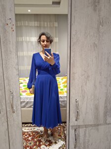 Uzun Kollu Kruvaze Yaka Midi Şifon Elbise Uzun Kollu Kruvaze Yaka Midi Şifon Elbise 528101 48