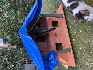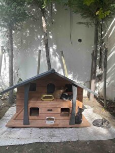 Yuva güzel, ancak büyük kediler içine zor giriyor girişler çok küçük, çatısı da su almaya müsait olduğundan naylon branda kullandık. Kurulumunu iki kişi kendimiz hallettik videoyu izleyerek.