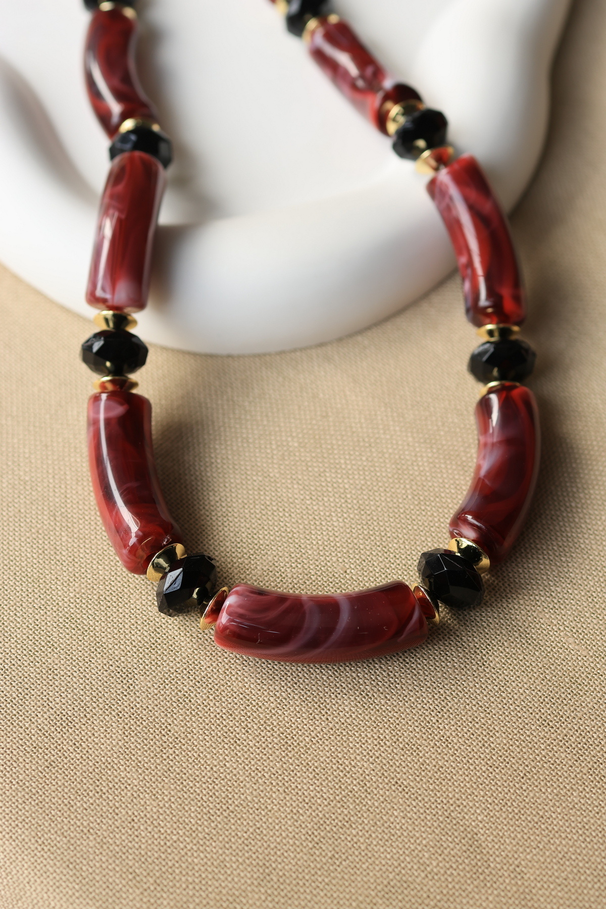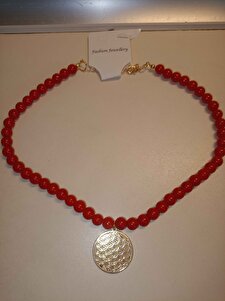 Gold Uçlu Kırmızı Cam Boncuk Kolye Gold Uçlu Kırmızı Cam Boncuk Kolye 621012273 تک سایز