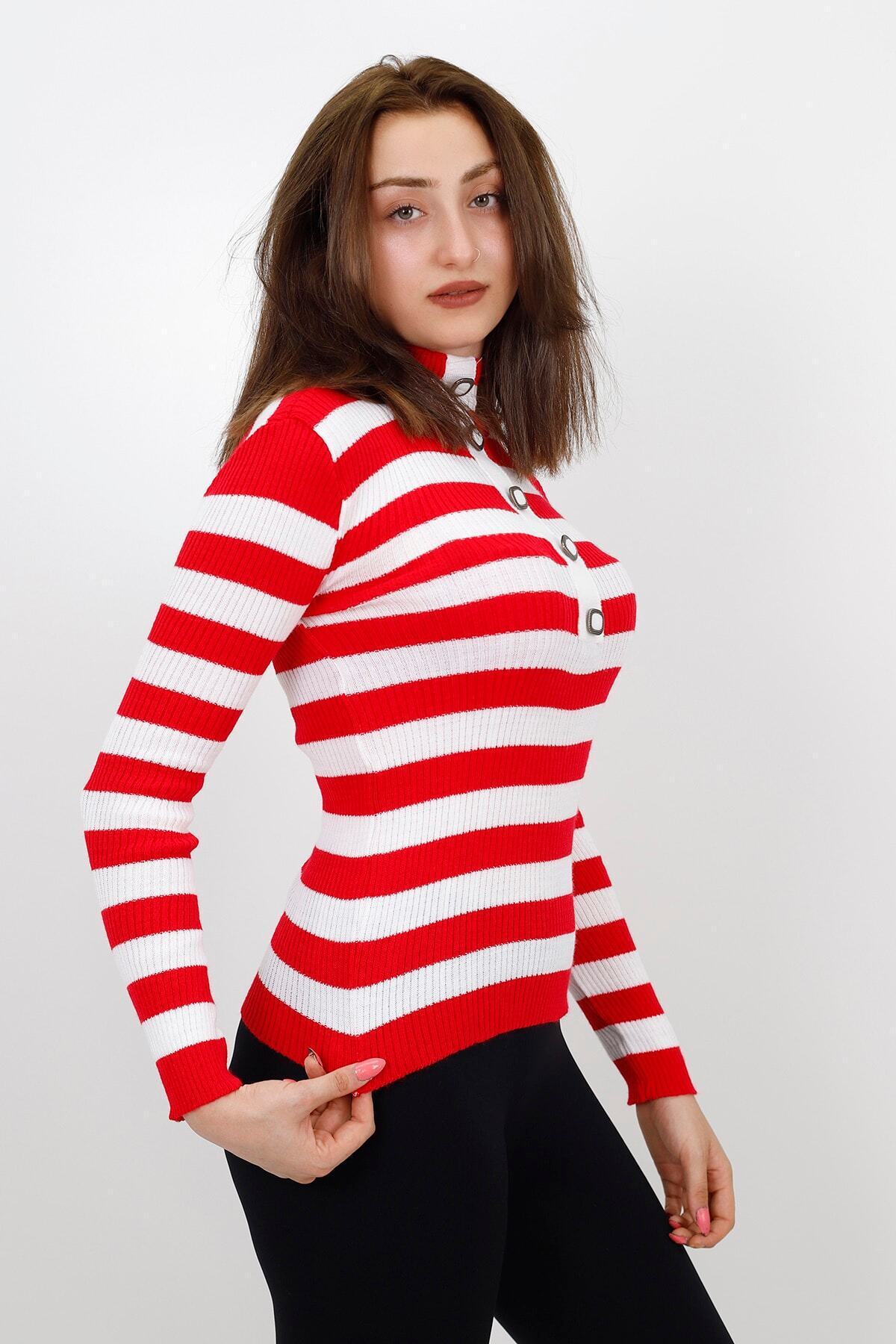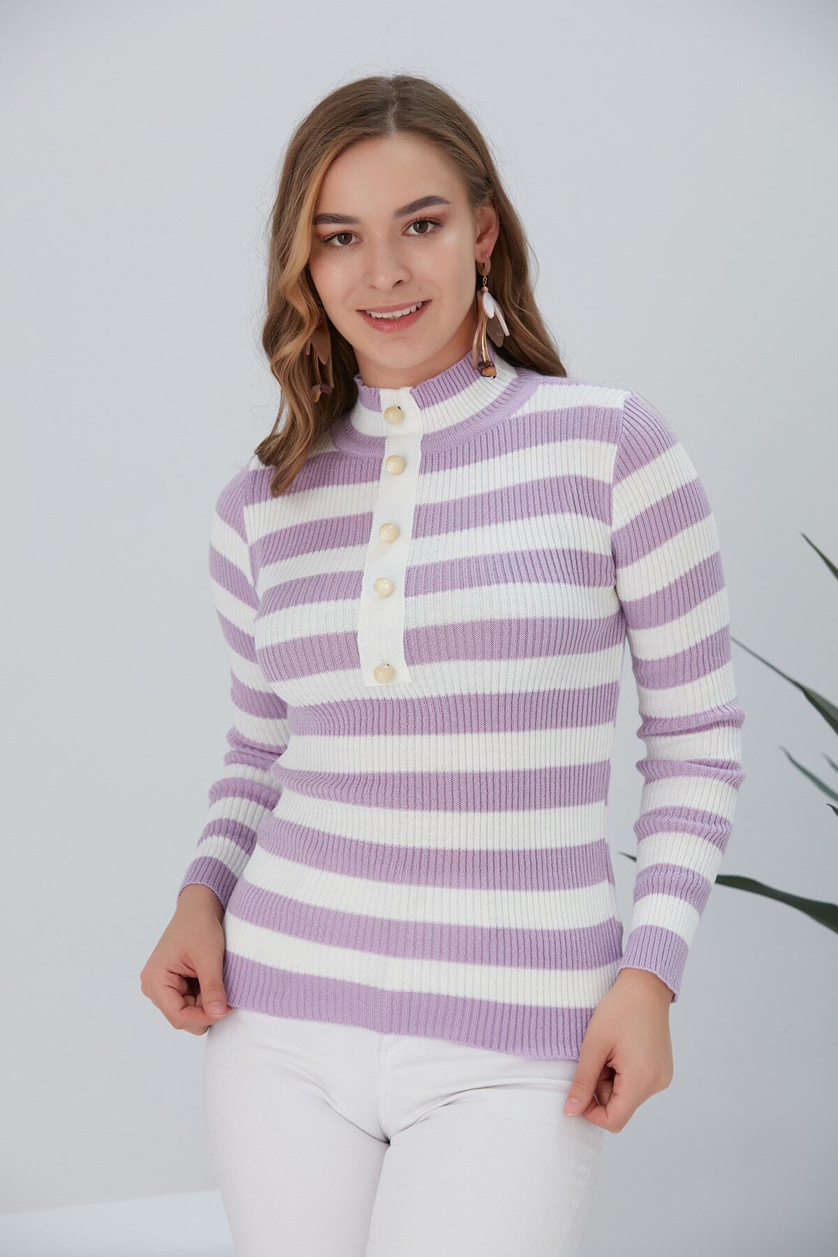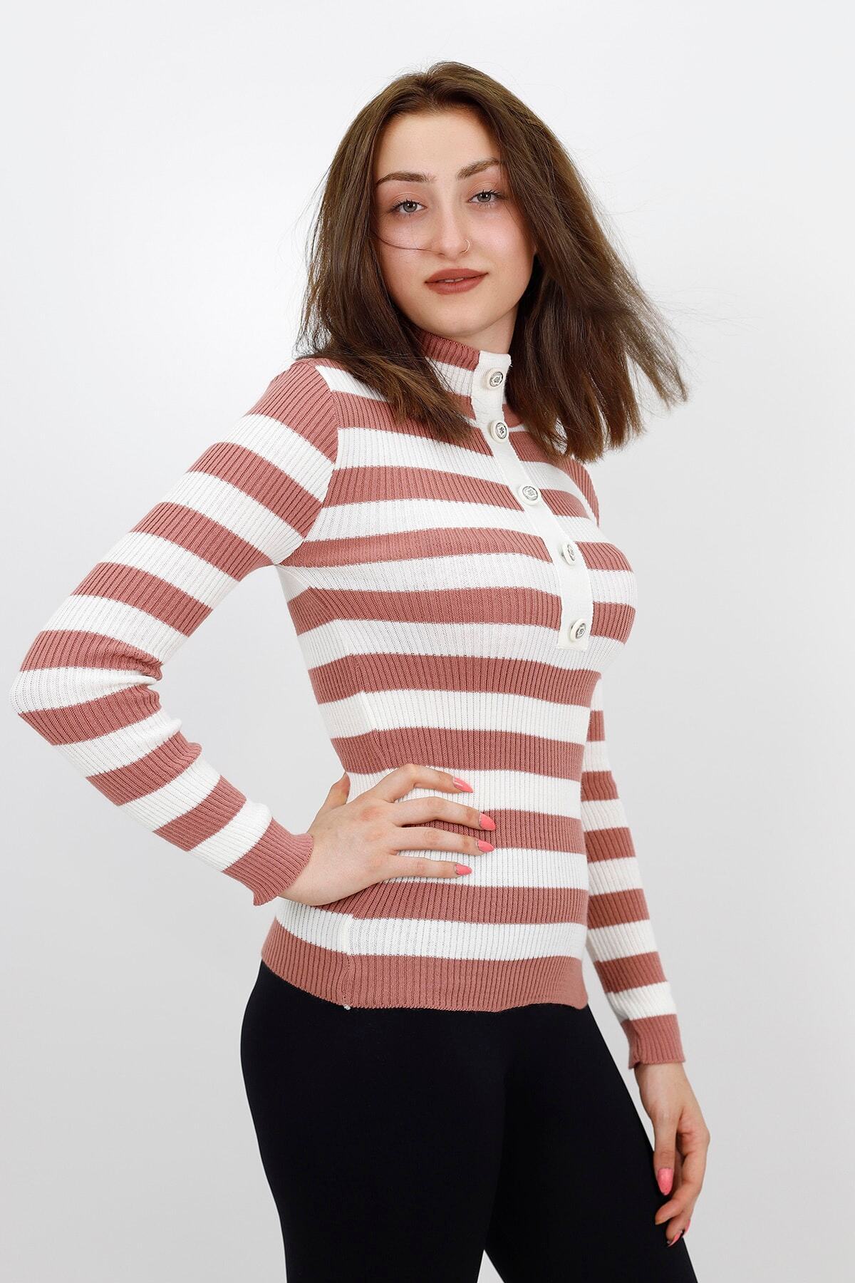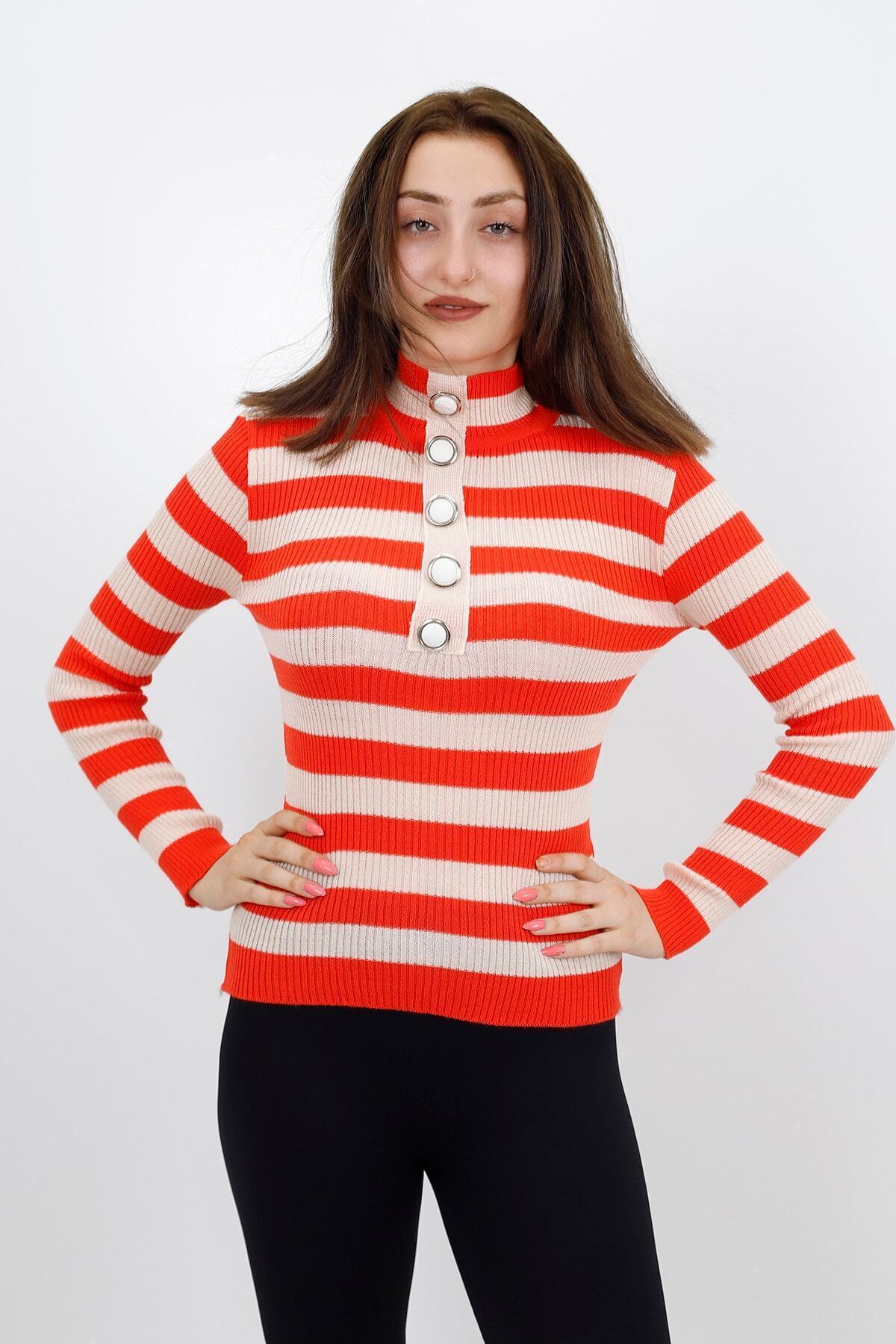 Kadın Çizgili Düğme Detaylı Balıkçı Yaka Triko Kazak Kadın Çizgili Düğme Detaylı Balıkçı Yaka Triko Kazak 82536 Standart