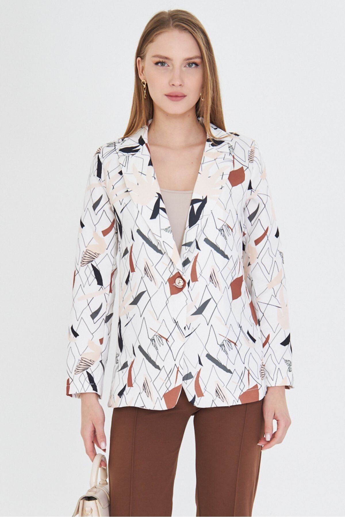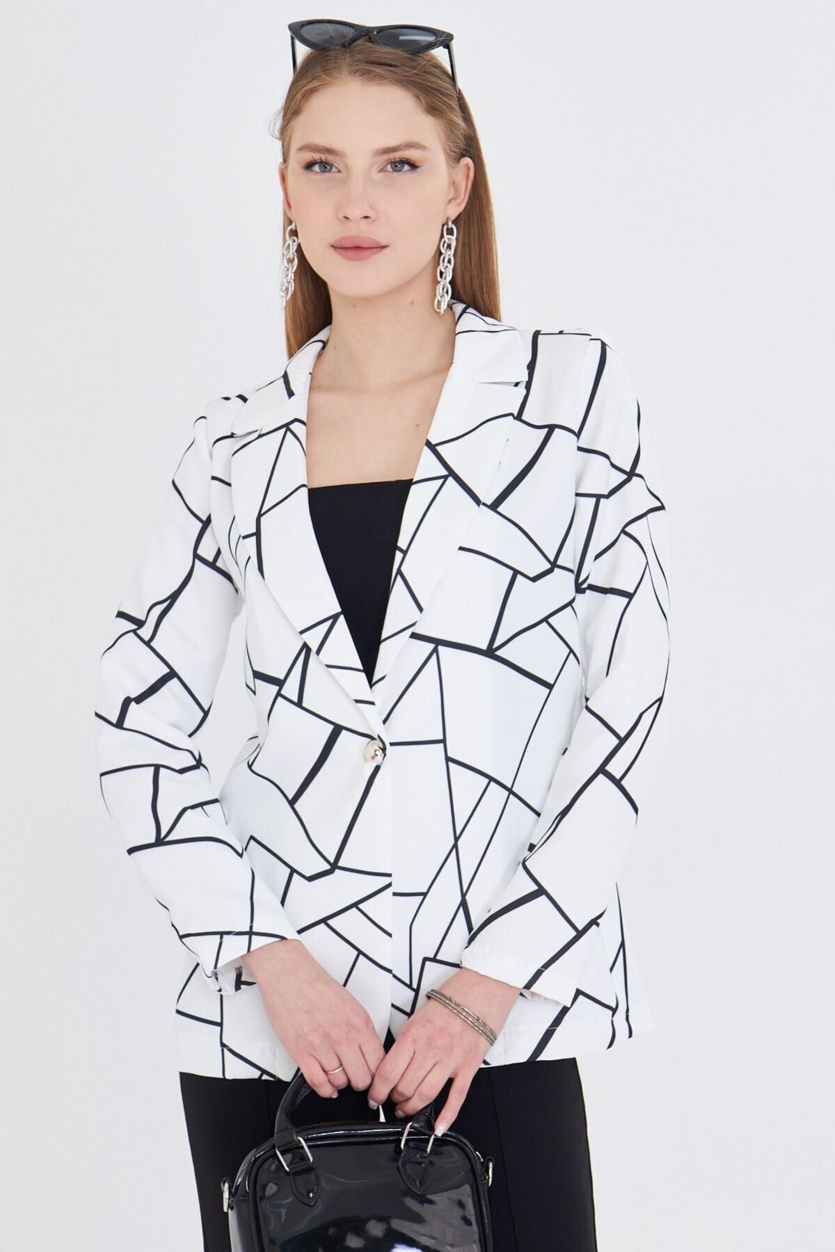 Kadın Beyaz Renkli Çizgili Tek Düğmeli Ceket ARM-20Y001005 Kadın Beyaz Renkli Çizgili Tek Düğmeli Ceket ARM-20Y001005 50