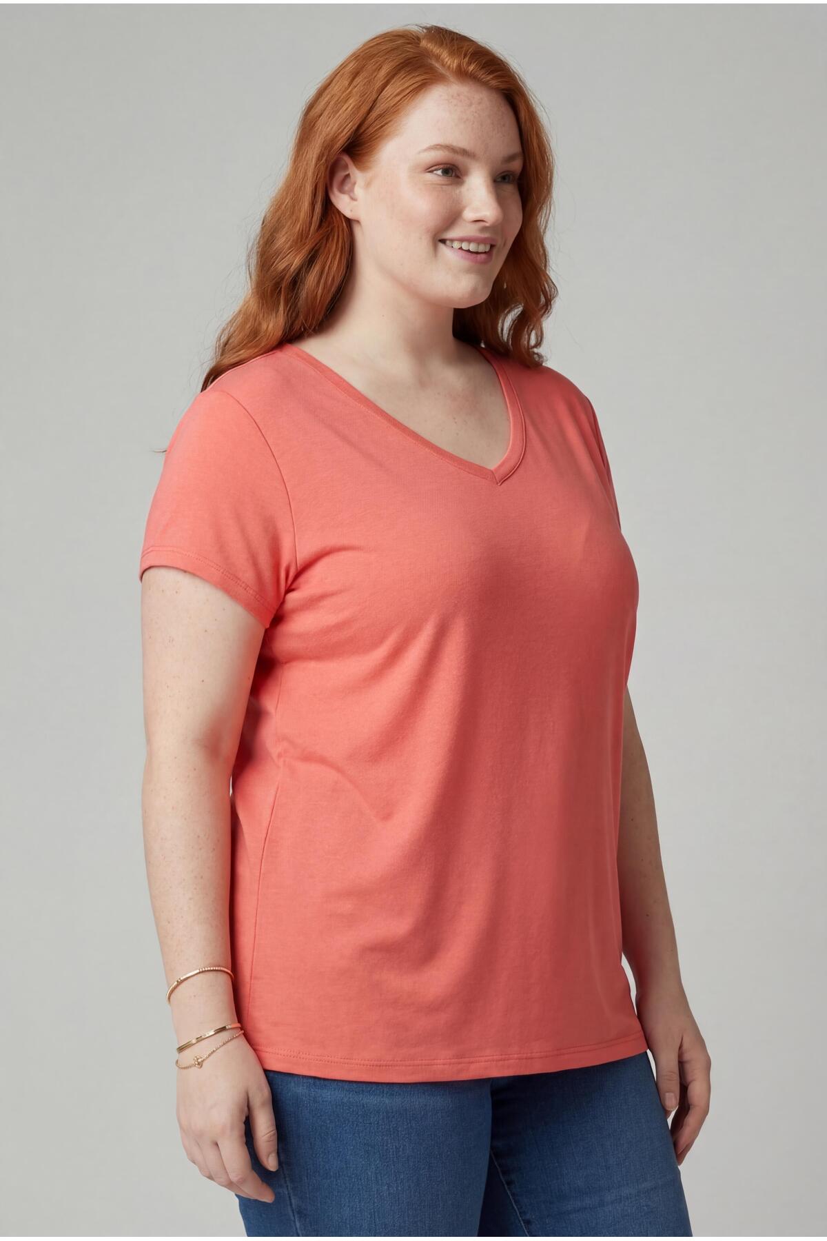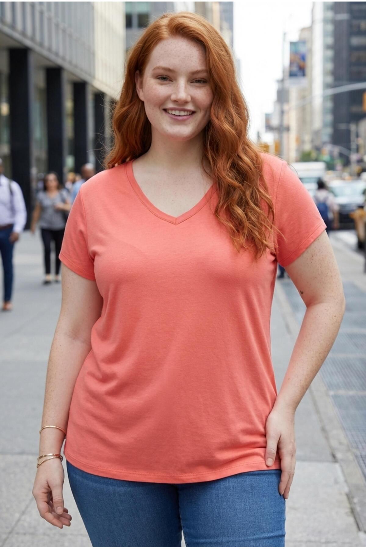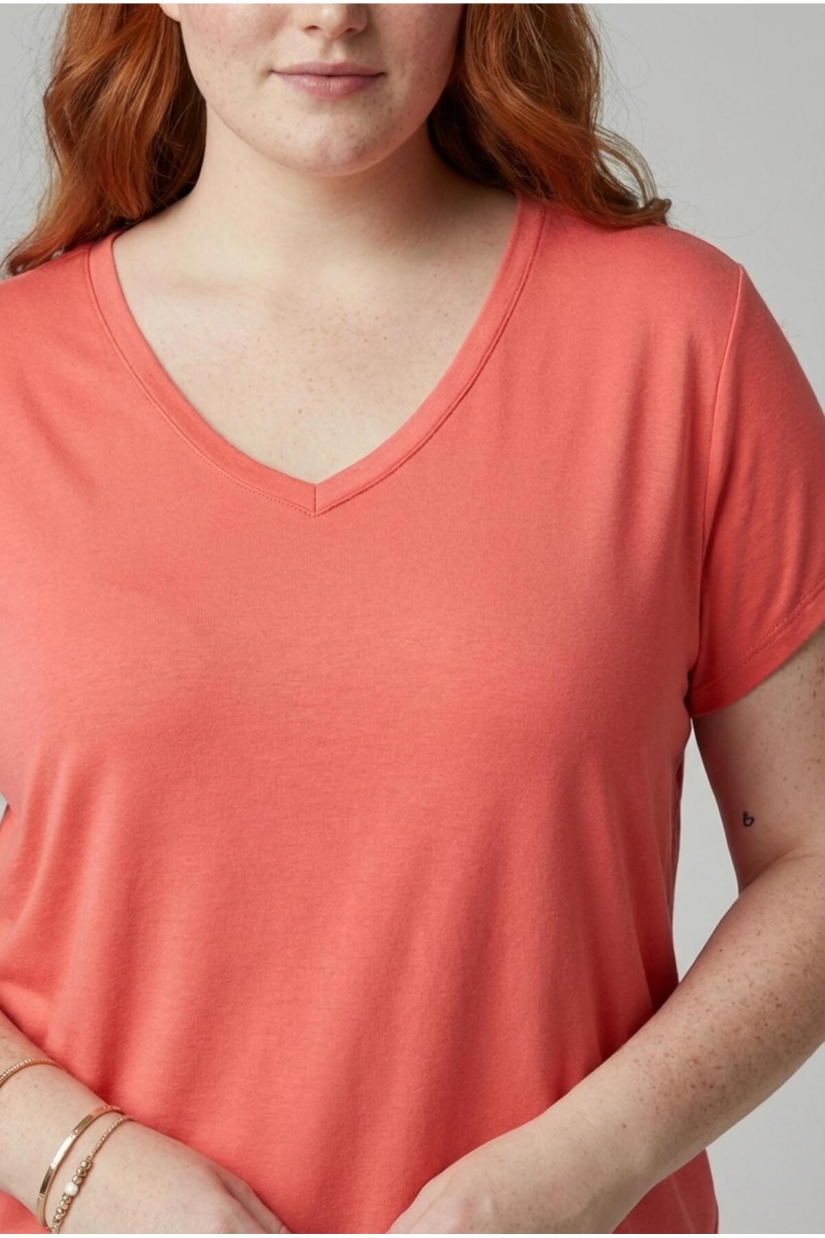 Kadın Büyük Beden V Yaka Mercan Tişört – Rahat Kesim, Nefes Alan Kumaş, 6XL'e Kadar Beden Seçeneği Kadın Büyük Beden V Yaka Mercan Tişört – Rahat Kesim, Nefes Alan Kumaş, 6XL'e Kadar Beden Seçeneği 1112 6XL
