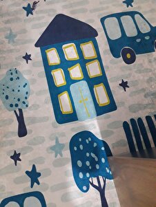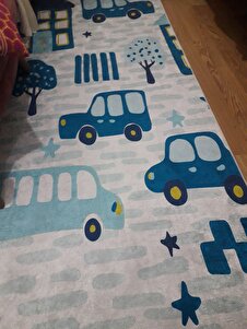 Figürlü Mavi Beyaz Çocuk Halısı Anti-bakteriyel Kaymaz Taban Kadife 8432 Figürlü Mavi Beyaz Çocuk Halısı Anti-bakteriyel Kaymaz Taban Kadife 8432 160 x 230