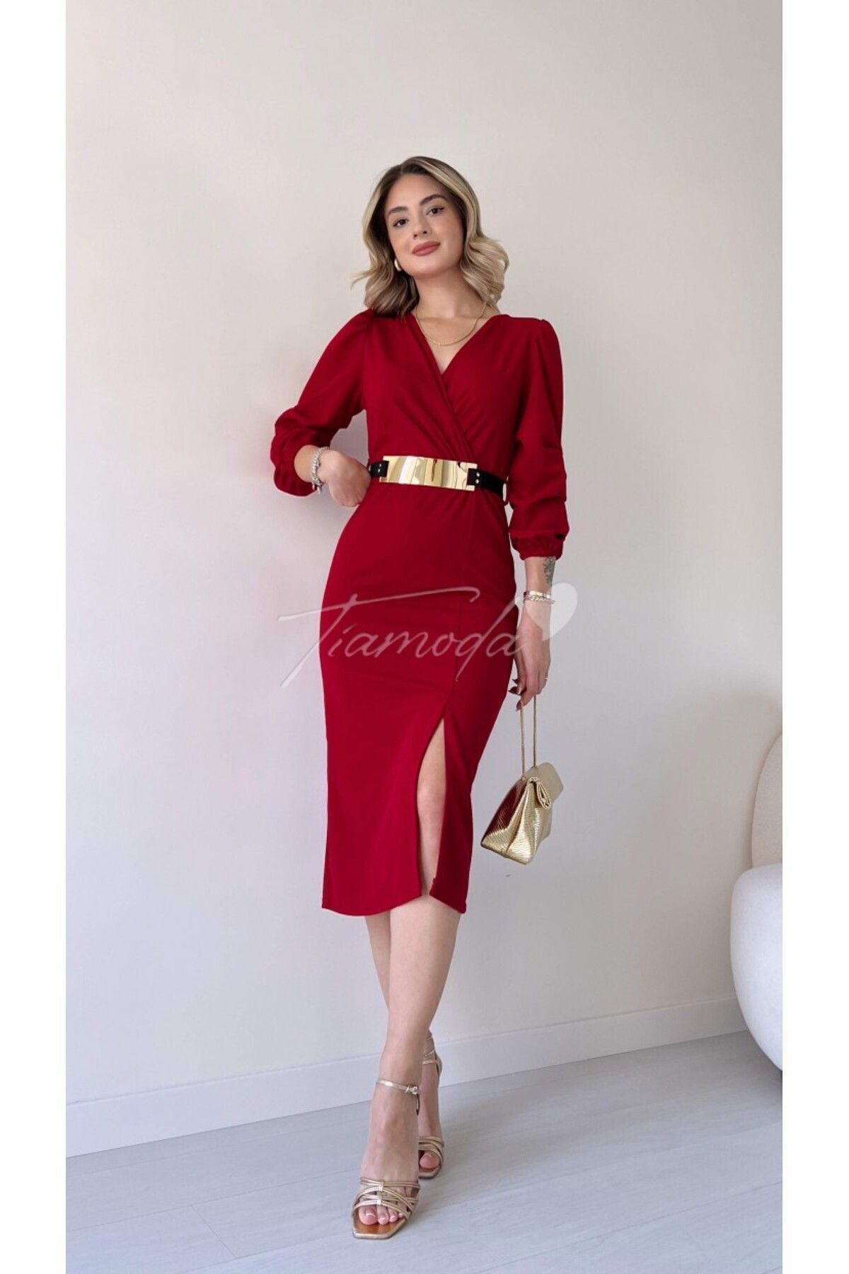 Kadın Krep Kumaş Aynalı Kemer Ve Yırtmaç Detaylı Kısa Kollu Kruvaze Yaka Kırmızı Kalem Elbise 074 Kadın Krep Kumaş Aynalı Kemer Ve Yırtmaç Detaylı Kısa Kollu Kruvaze Yaka Kırmızı Kalem Elbise 074 4S1B-DKS-074 42