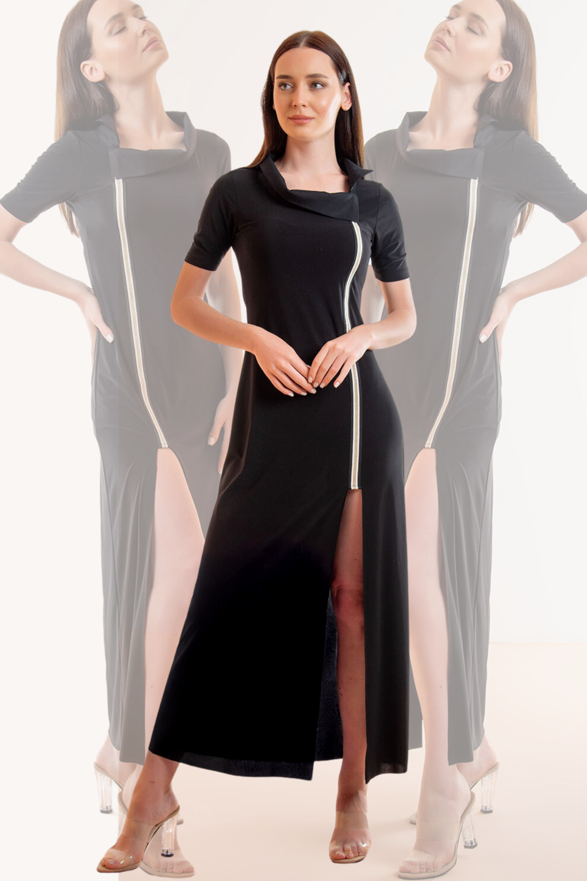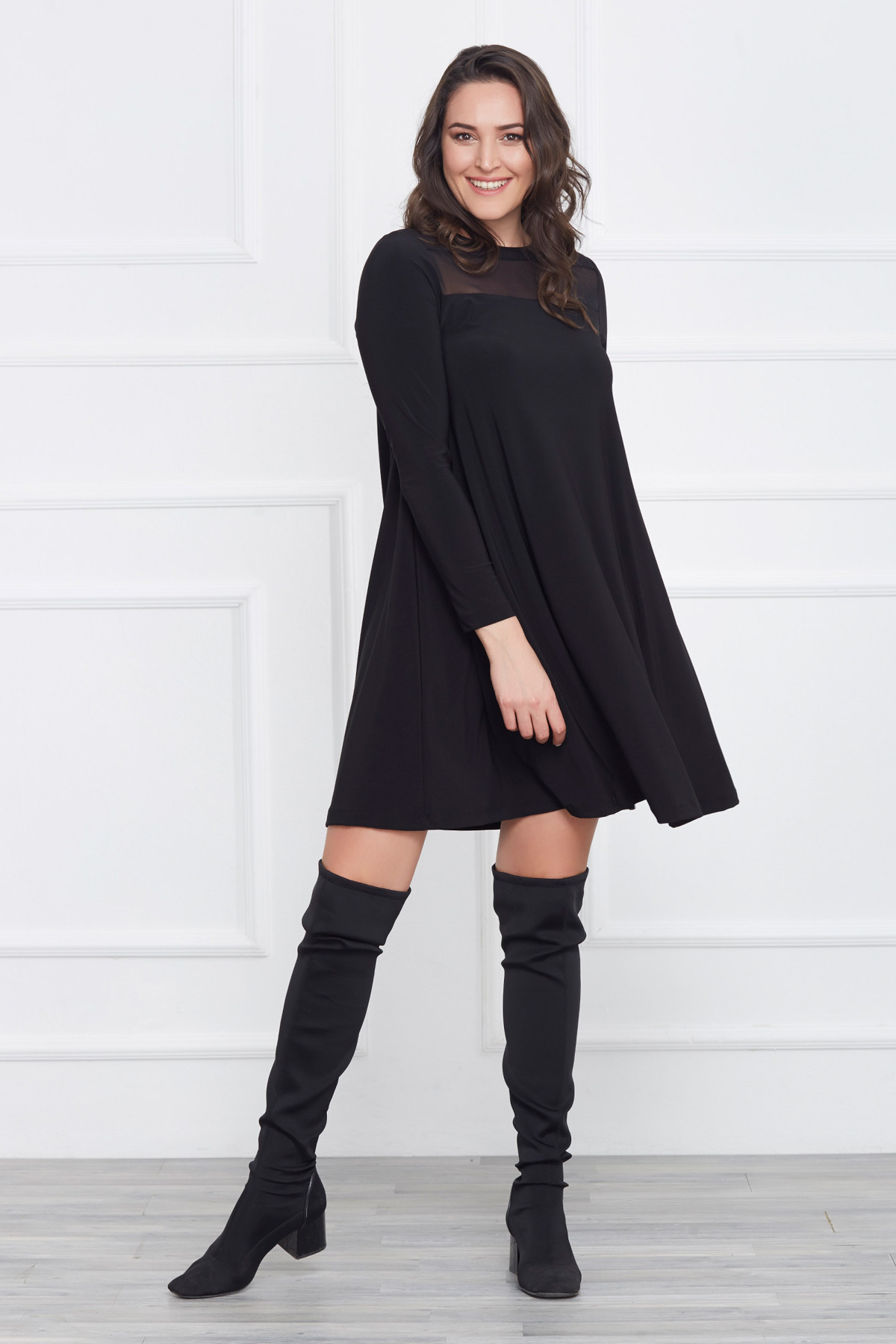 Siyah Damla Yaka Yarım Ispanyol Kol Krep Elbise Siyah Damla Yaka Yarım Ispanyol Kol Krep Elbise 22L7318 48